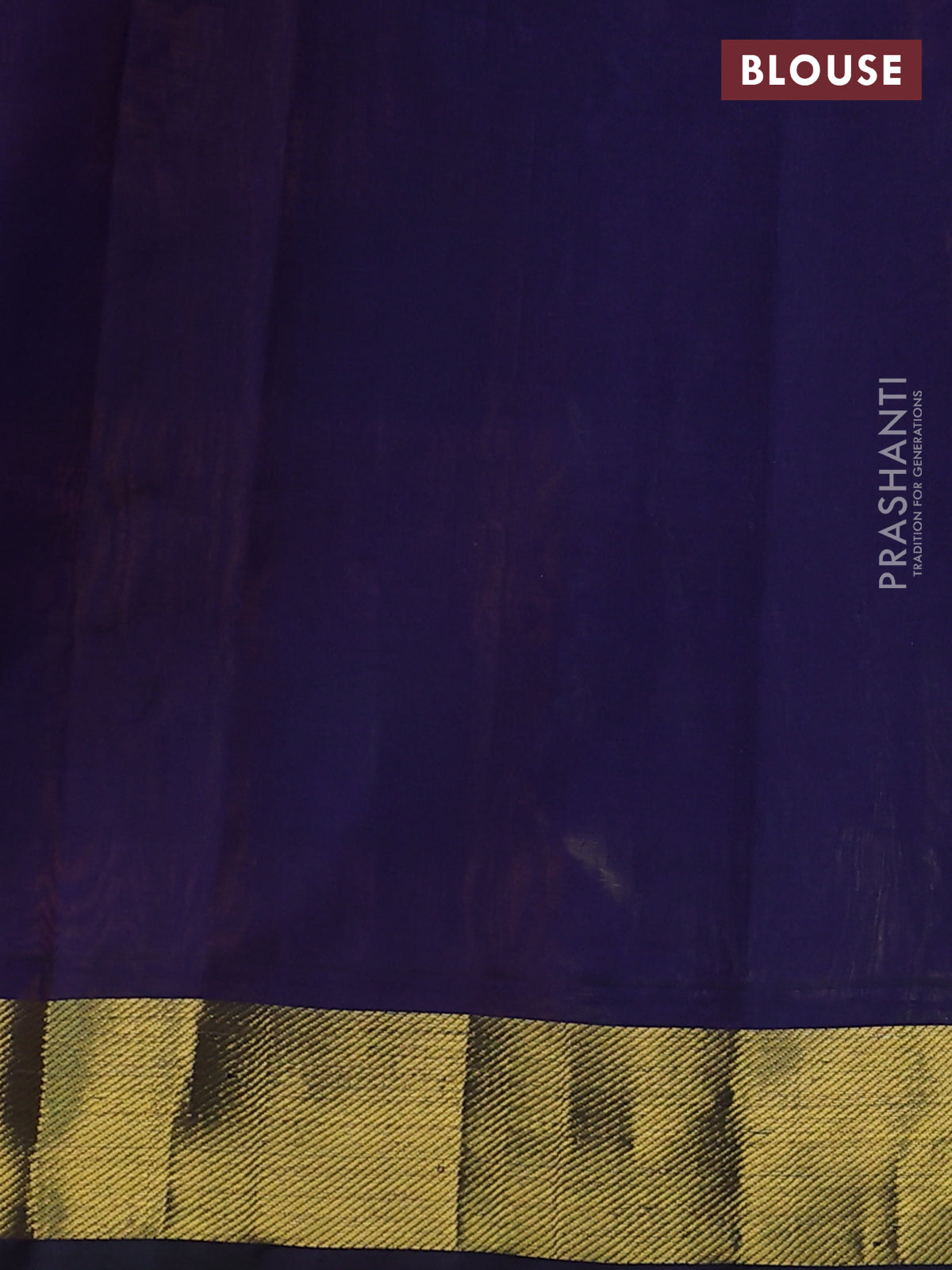 Silk cotton saree orange and navy blue with allover paalum pazhamum checks & buttas and zari woven border