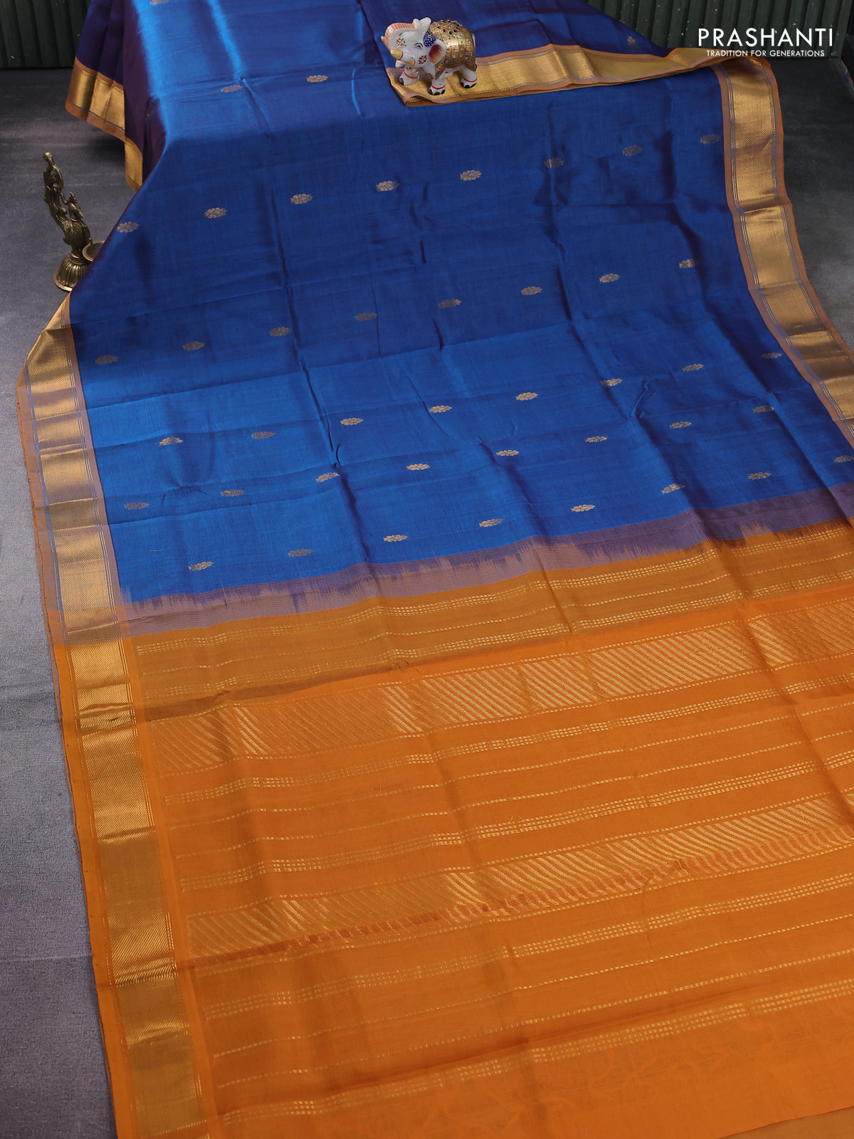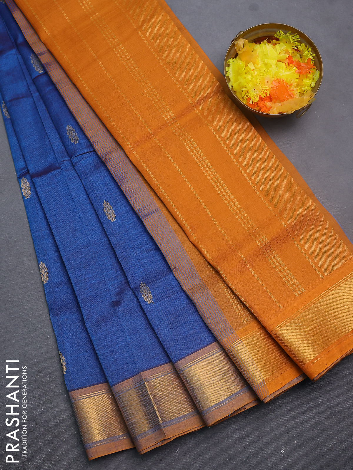 Silk cotton saree peacock blue and mustard yellow with zari woven buttas and rich zari woven border