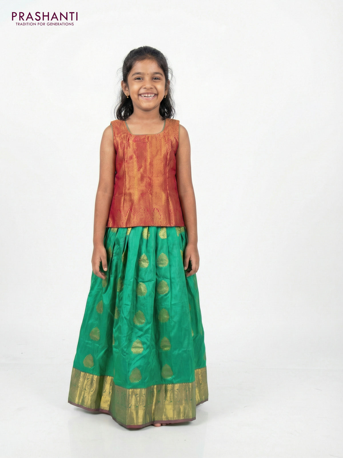 Silk kids lehenga pink and green with zari woven brocade weaves and zari buttas & zari border for 6-7 years