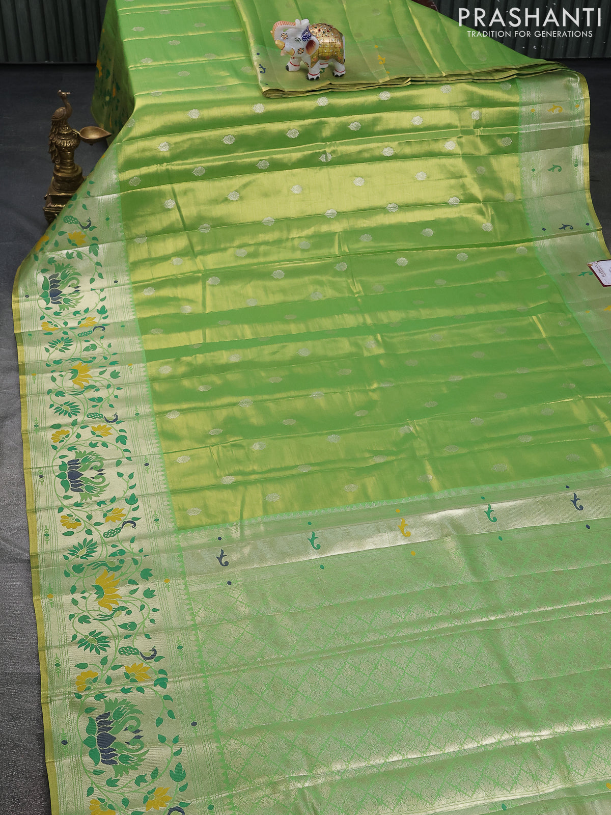 Tissue paithani saree light green with zari woven buttas and zari woven paithani style border