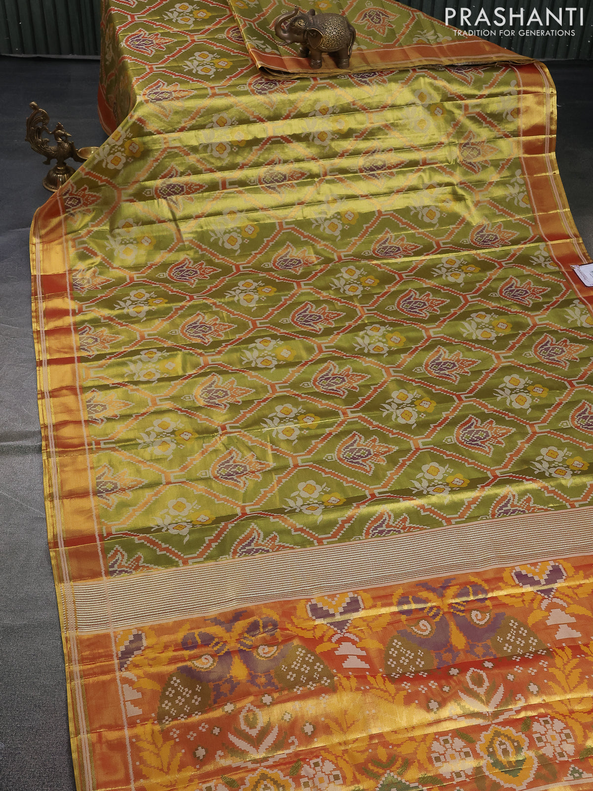 Tissue paithani saree mehendi green and red with allover ikat thread weaves and rettapet border