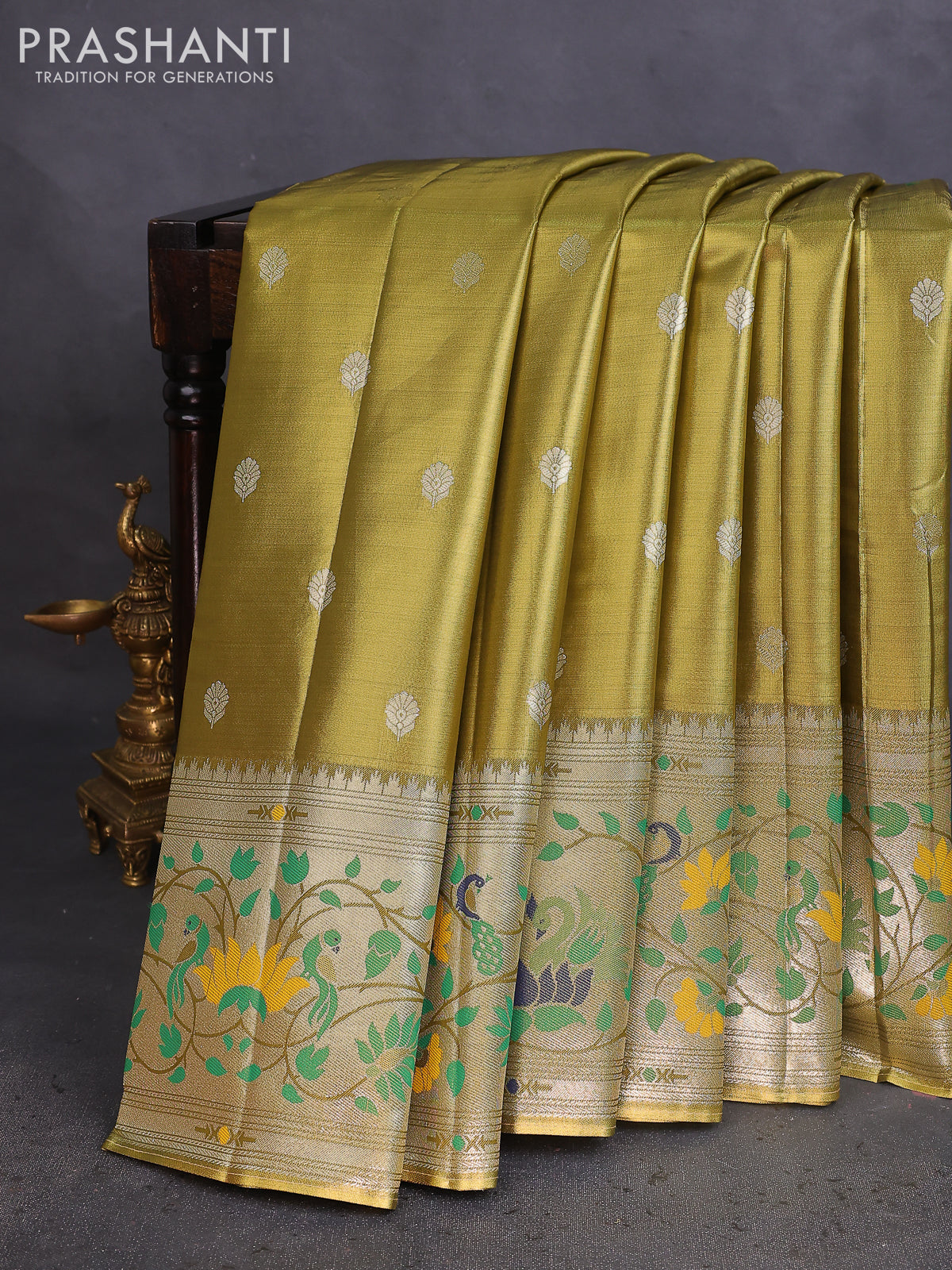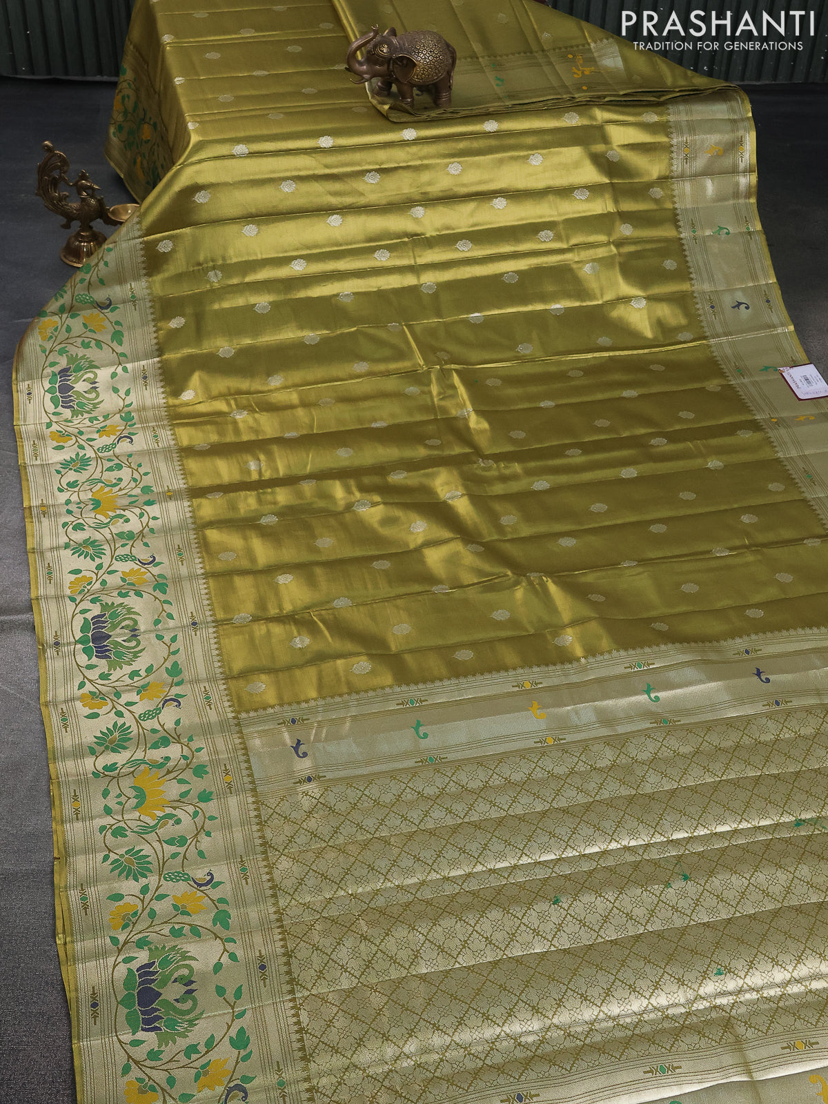 Tissue paithani saree mehendi green shade with zari woven buttas and zari woven paithani style border