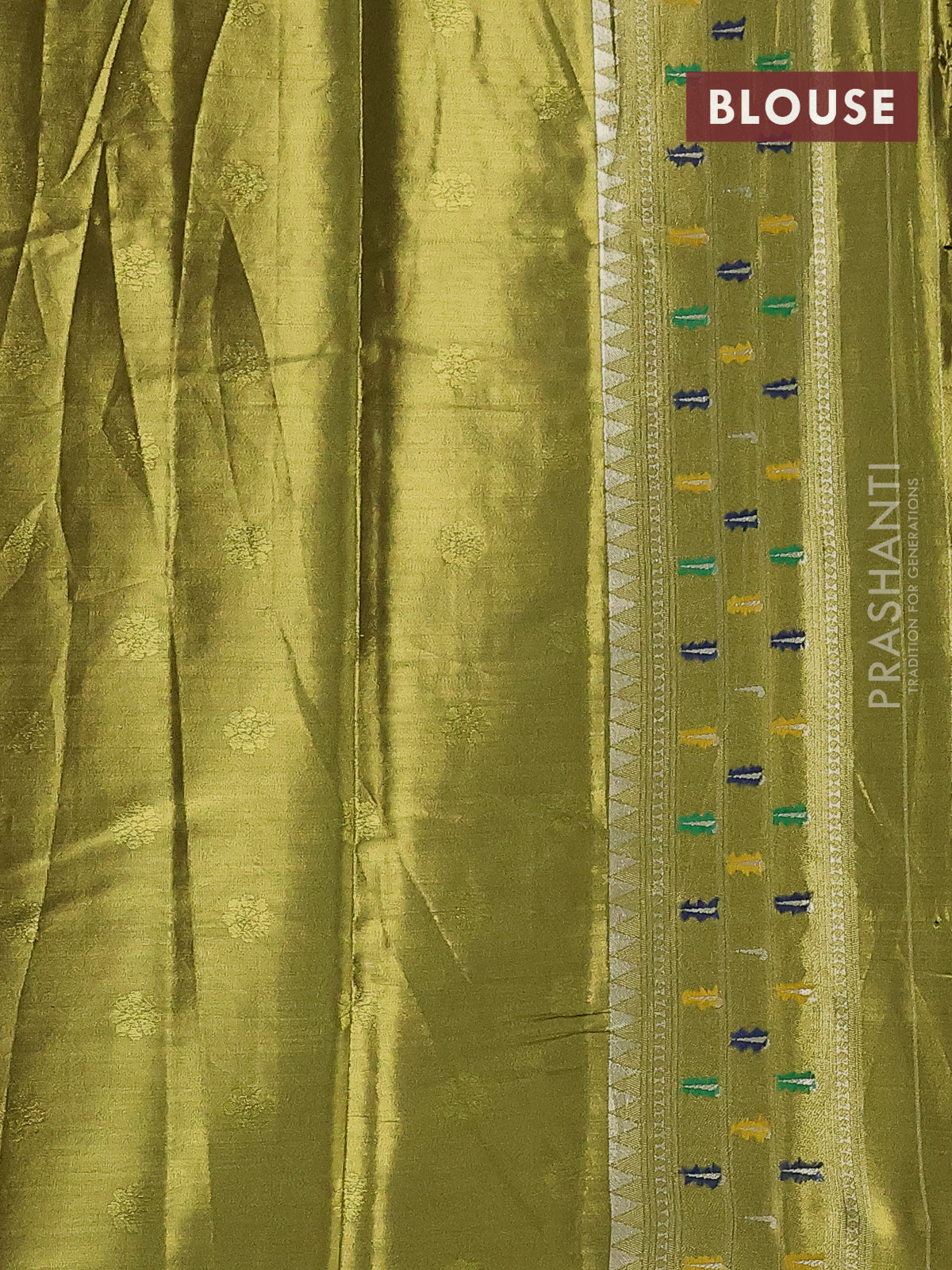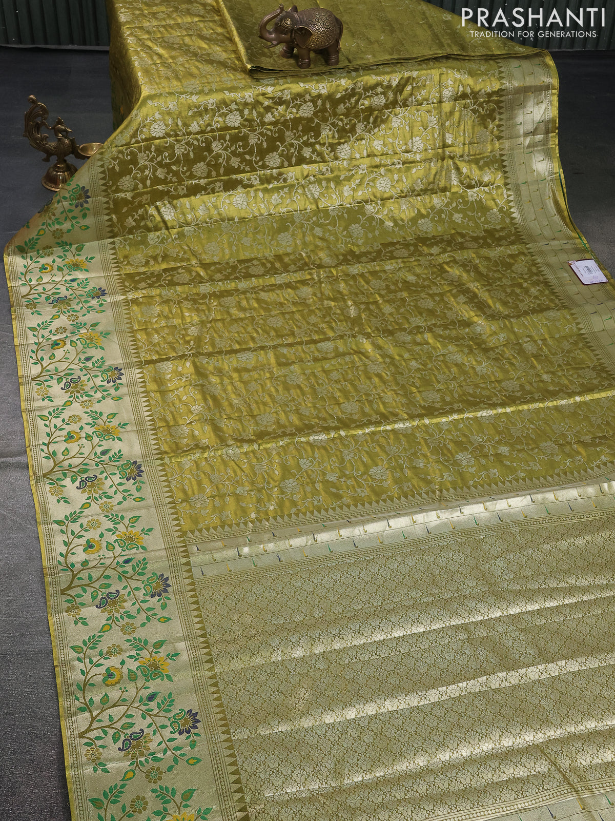 Tissue paithani saree mehendi green with allover floral zari weaves and zari woven paithani style border