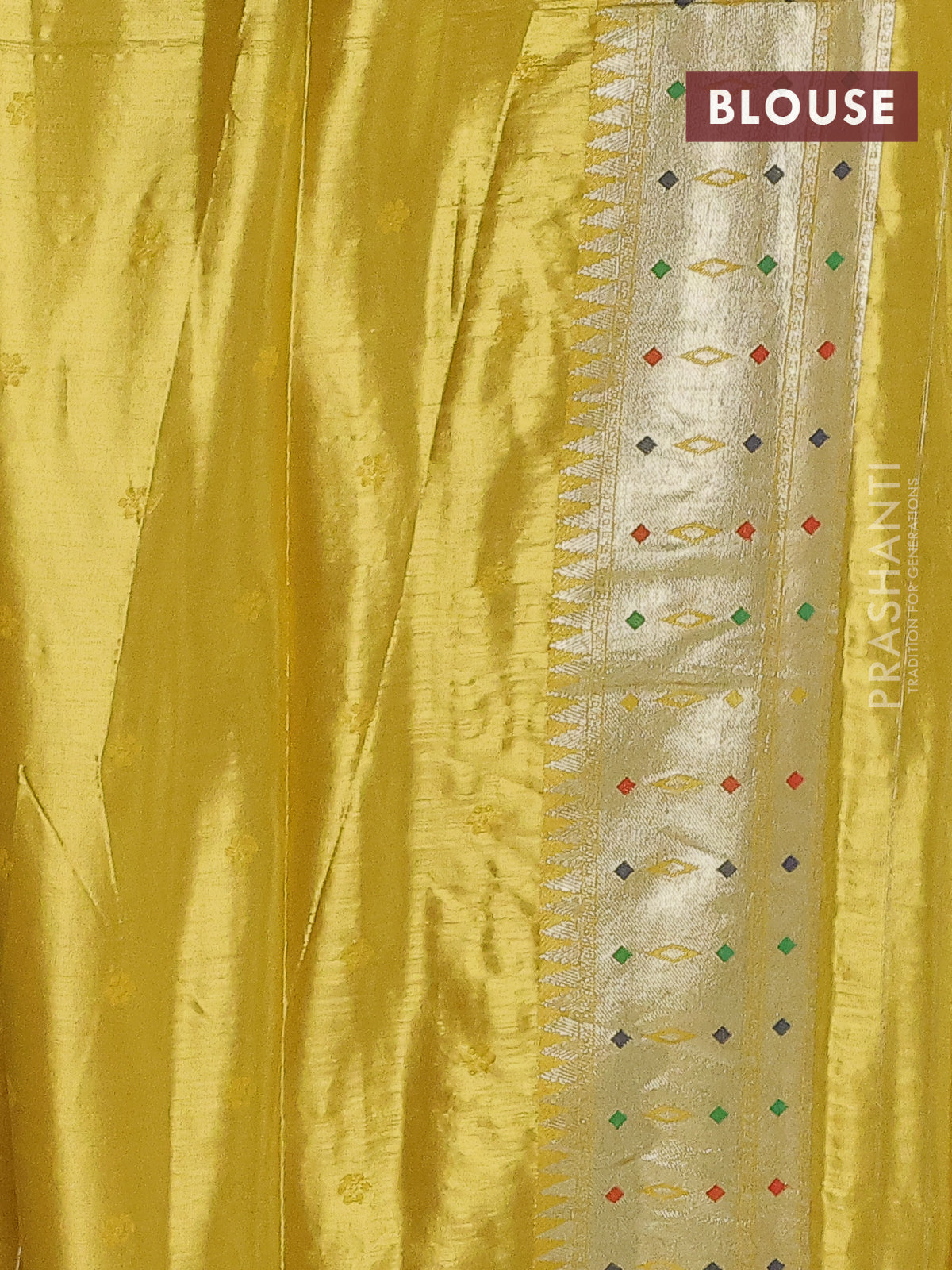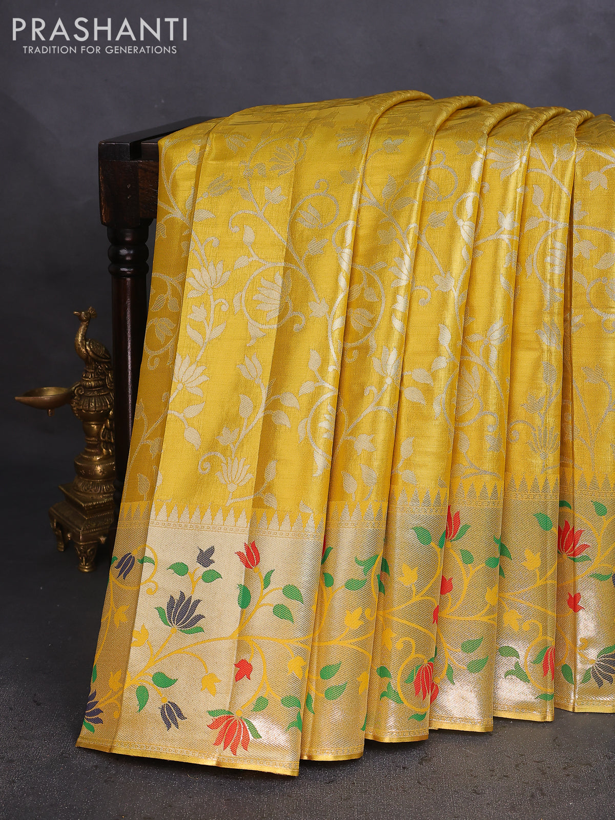 Tissue paithani saree yellow with allover floral zari weaves and zari woven paithani style border