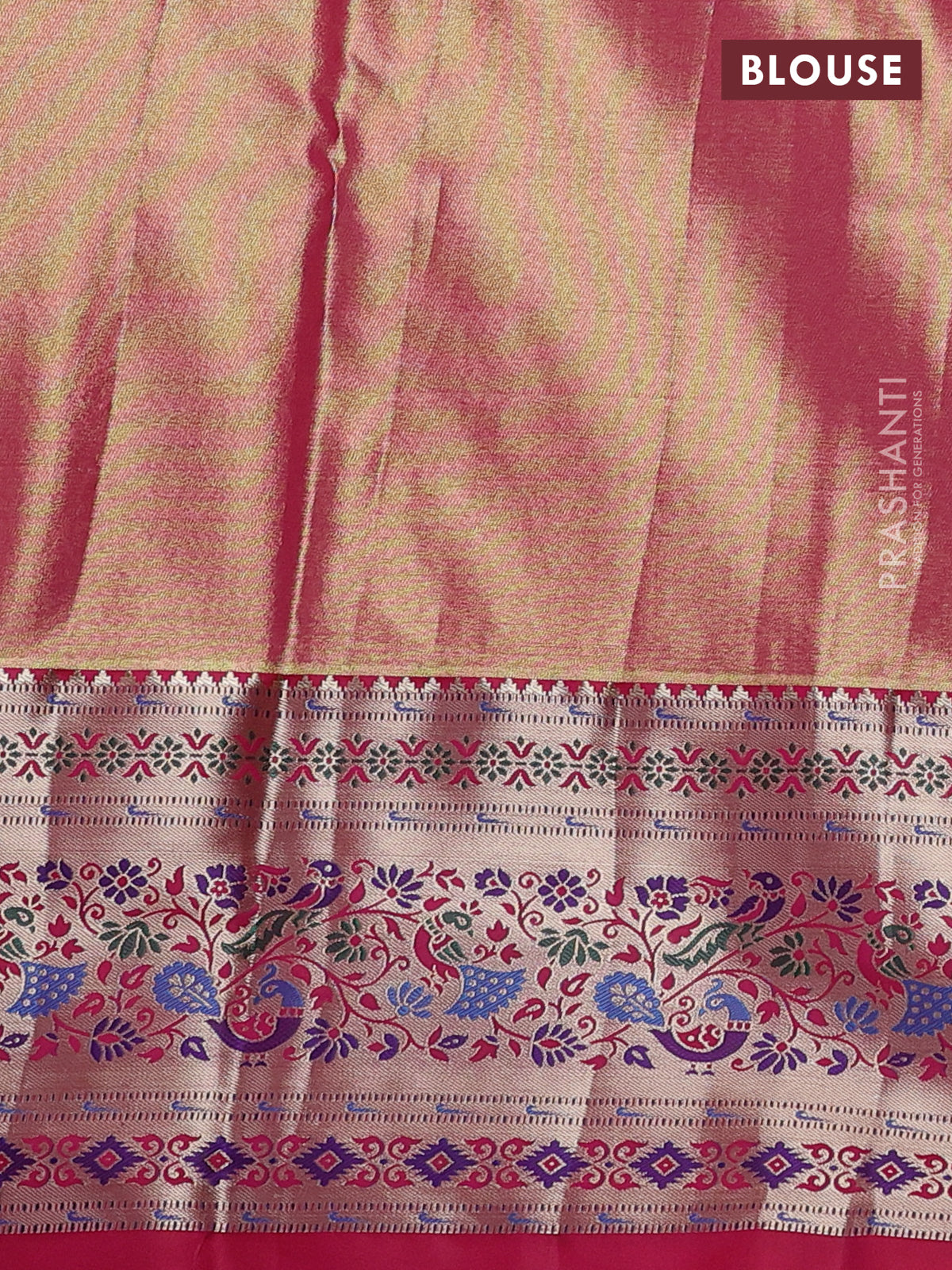 Tissue paithani silk saree blue and pink with allover silver zari woven brocade weaves and zari woven paithani style border