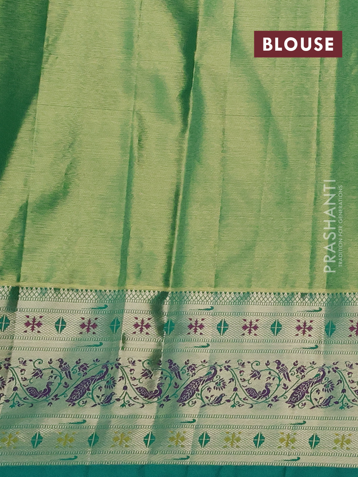 Tissue paithani silk saree dual shade of pastel grey and teal green with allover silver zari woven brocade weaves and zari woven paithani style border