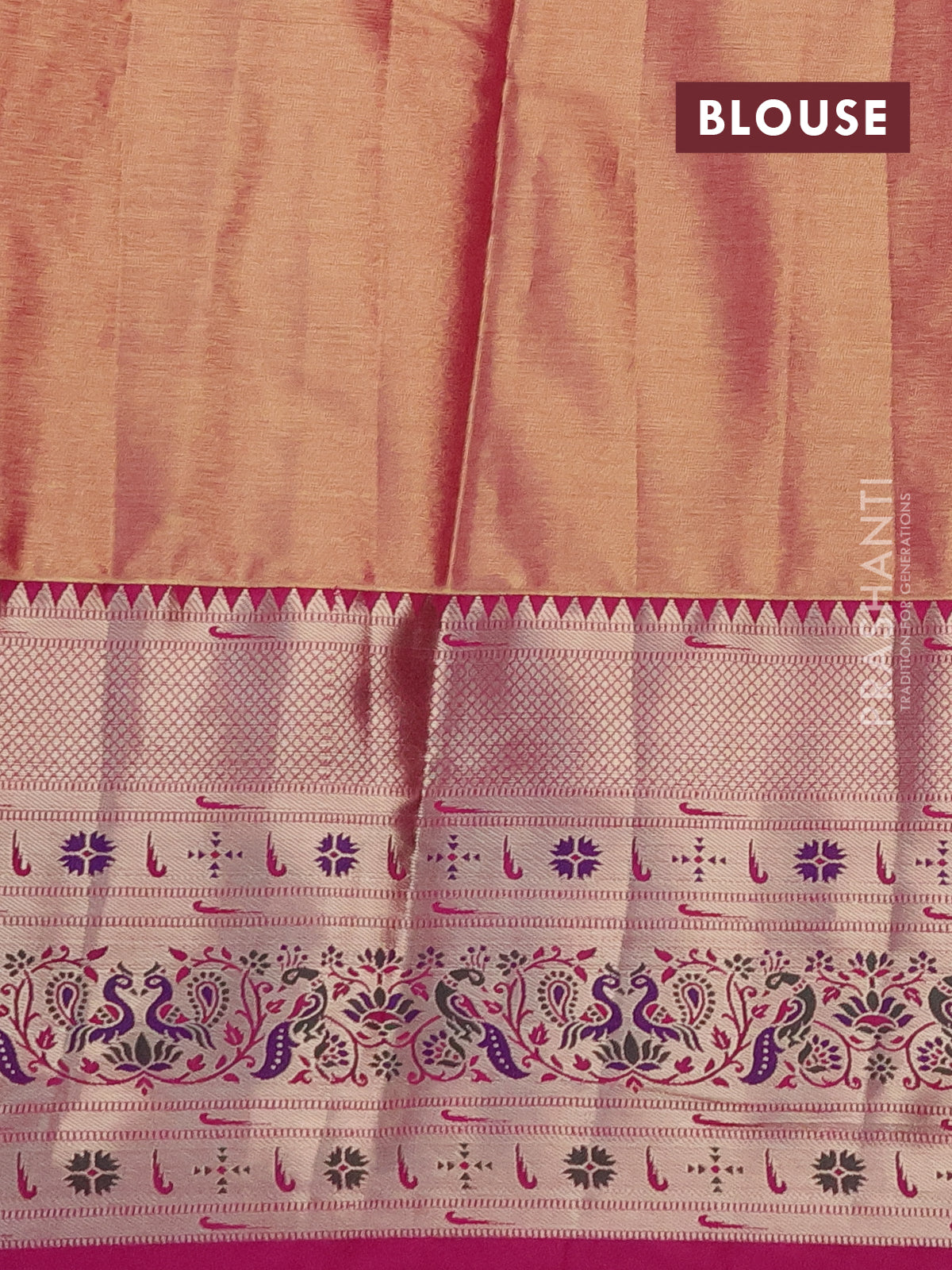 Material : Semi Tissue Paithani Silk Blouse : Attached Length of saree : 6.2 mts (5.5 mts saree & 70... Read more