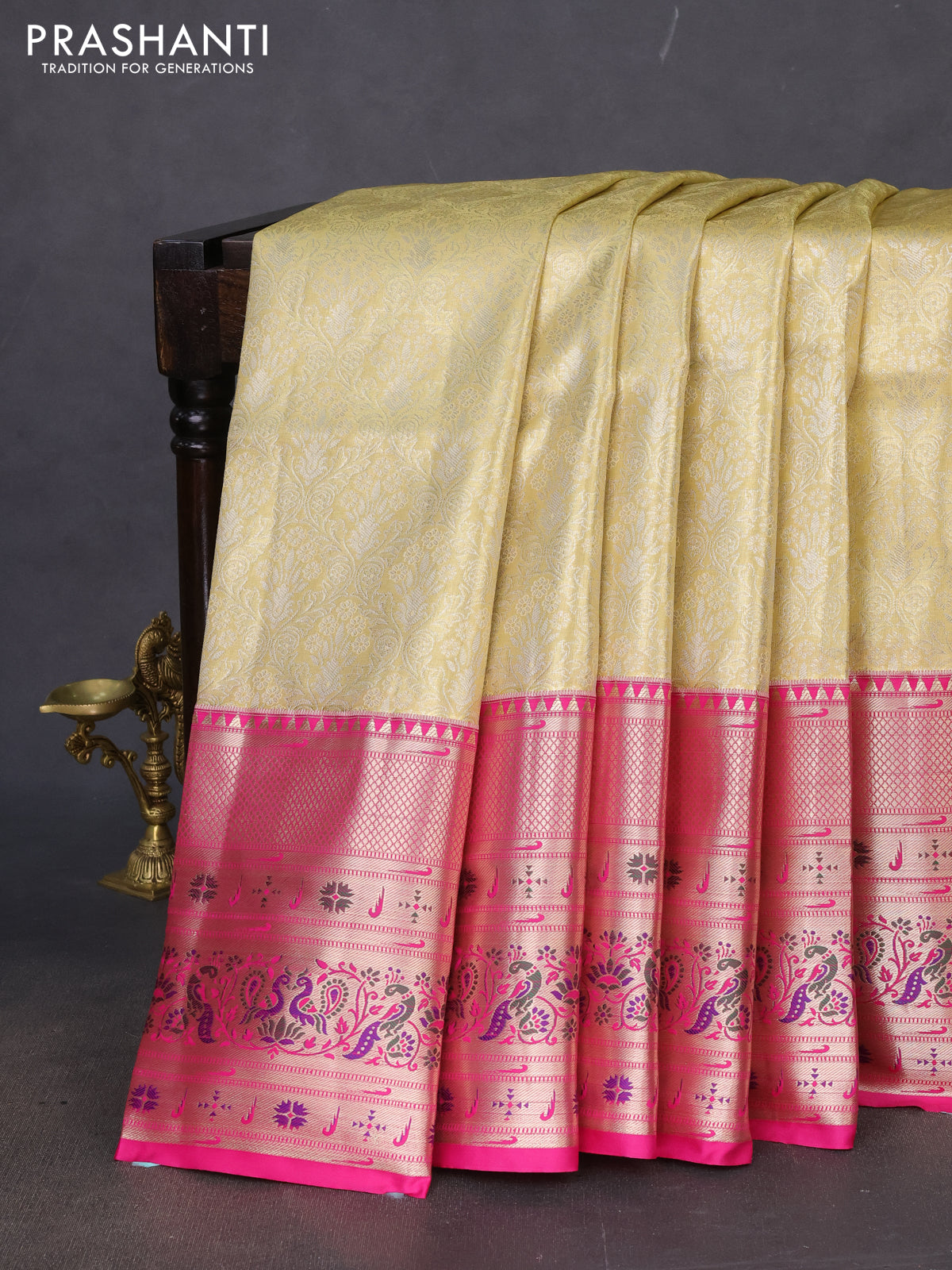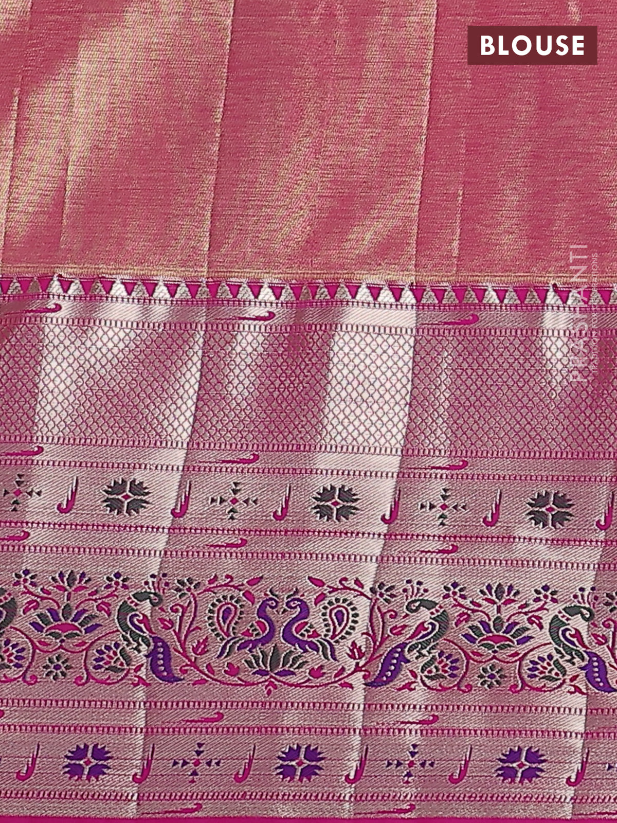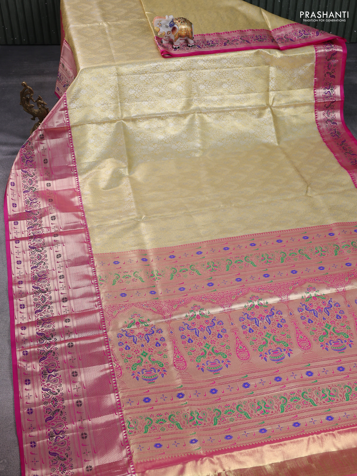 Tissue paithani silk saree gold and pink with allover zari woven brocade weaves and long zari woven paithani style border