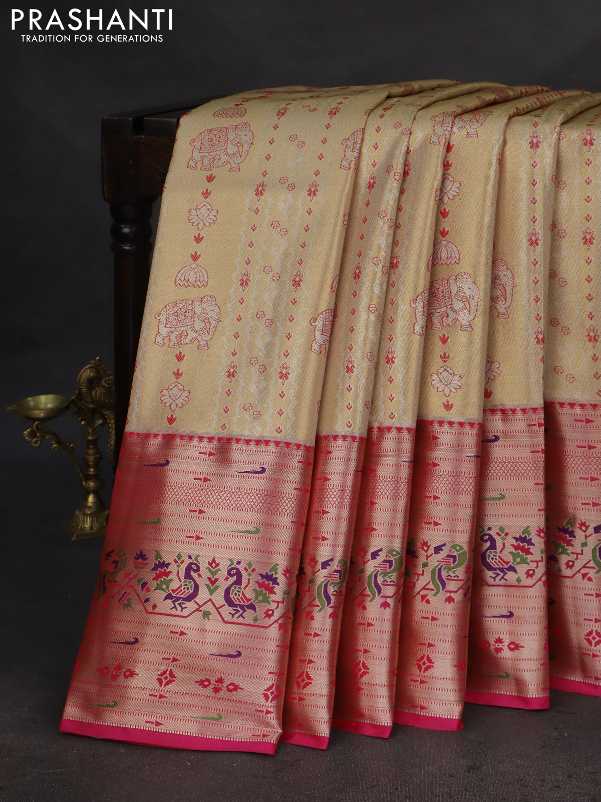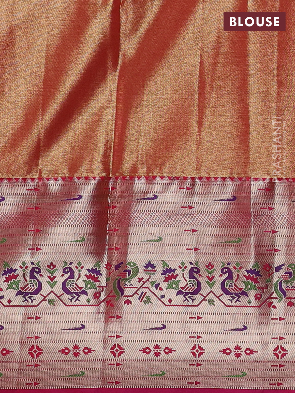 Tissue paithani silk saree gold and pink with allover zari woven brocade weaves and long zari woven paithani style border
