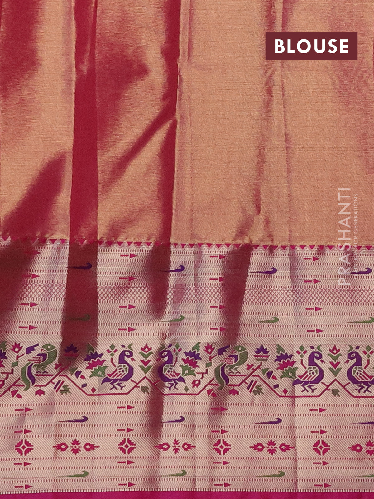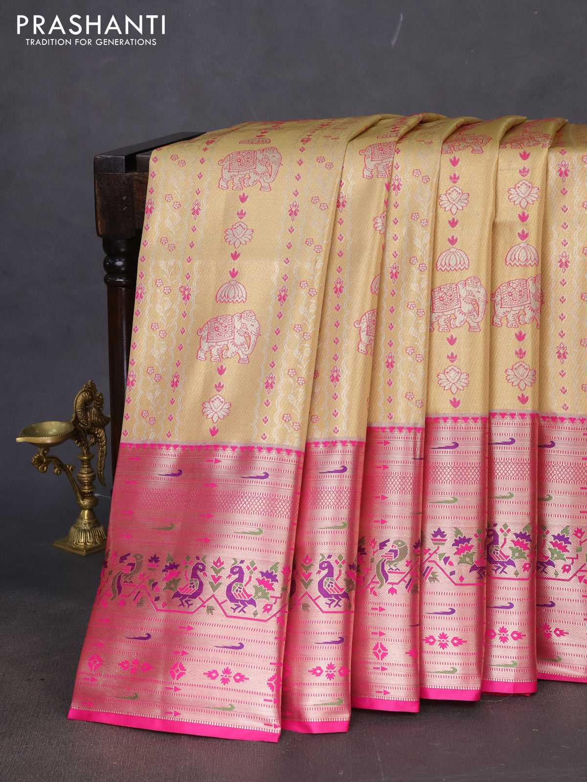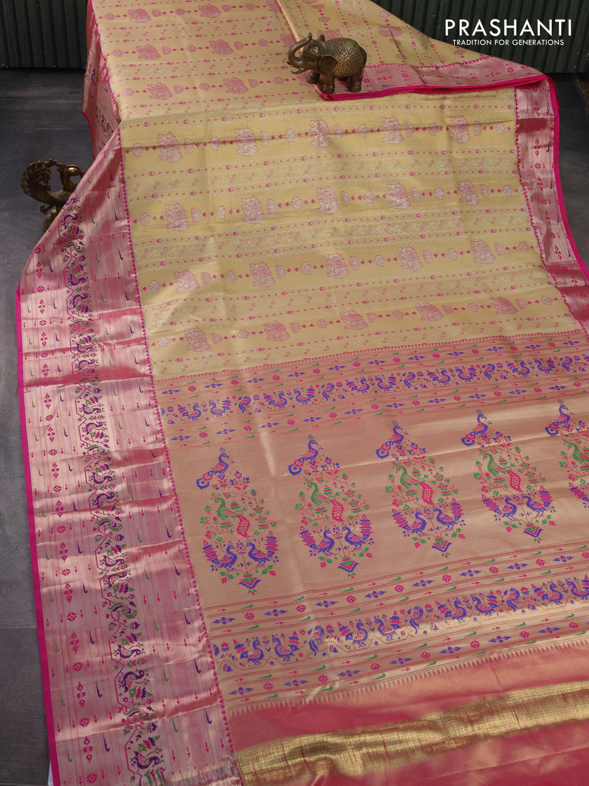 Tissue paithani silk saree gold and pink with allover zari woven brocade weaves and long zari woven paithani style border