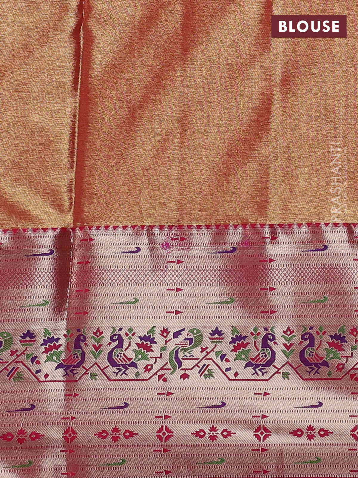 Material : Semi Tissue Paithani Silk Blouse : Attached Length of saree : 6.2 mts (5.5 mts saree & 70... Read more