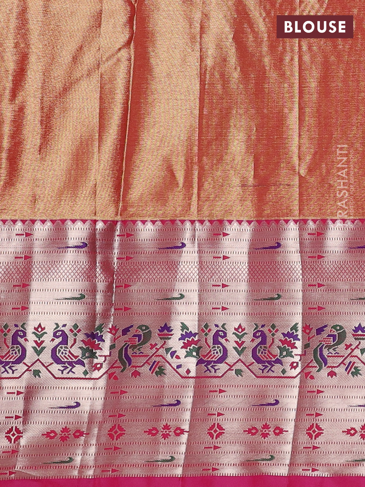 Material : Semi Tissue Paithani Silk Blouse : Attached Length of saree : 6.2 mts (5.5 mts saree & 70... Read more