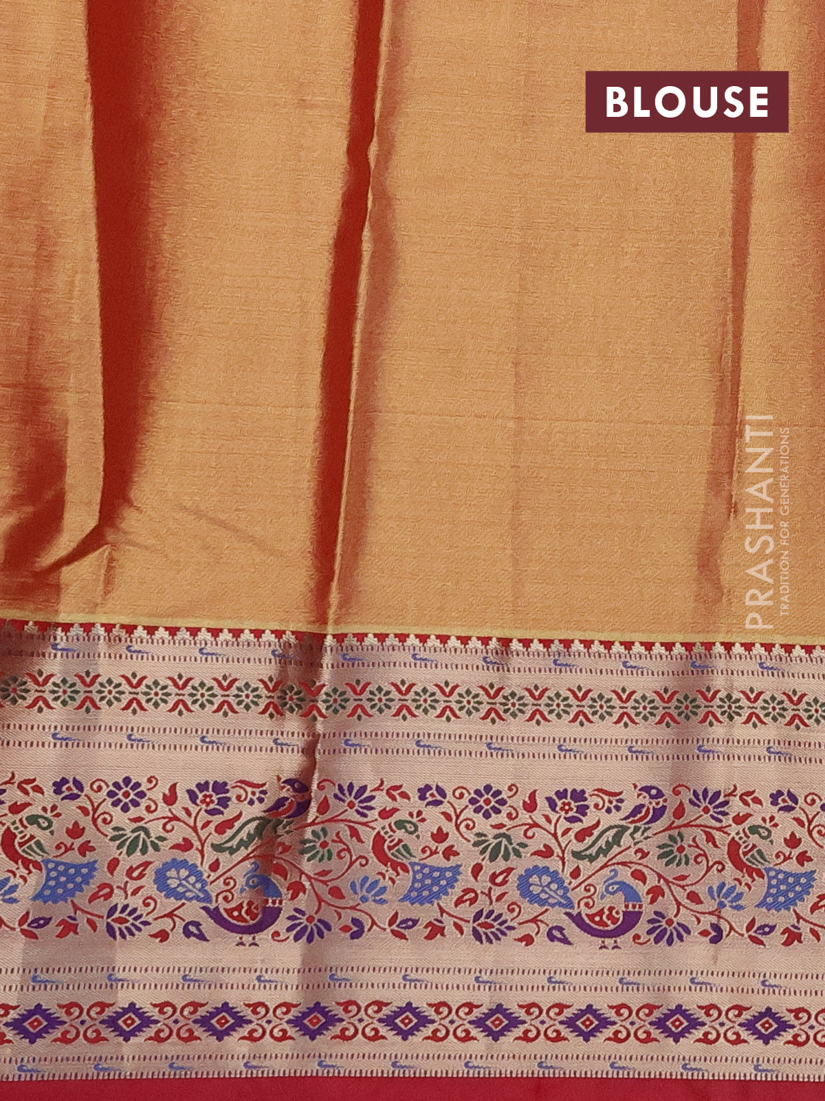 Material : Semi Tissue Paithani Silk Blouse : Attached Length of saree : 6.2 mts (5.5 mts saree & 70... Read more