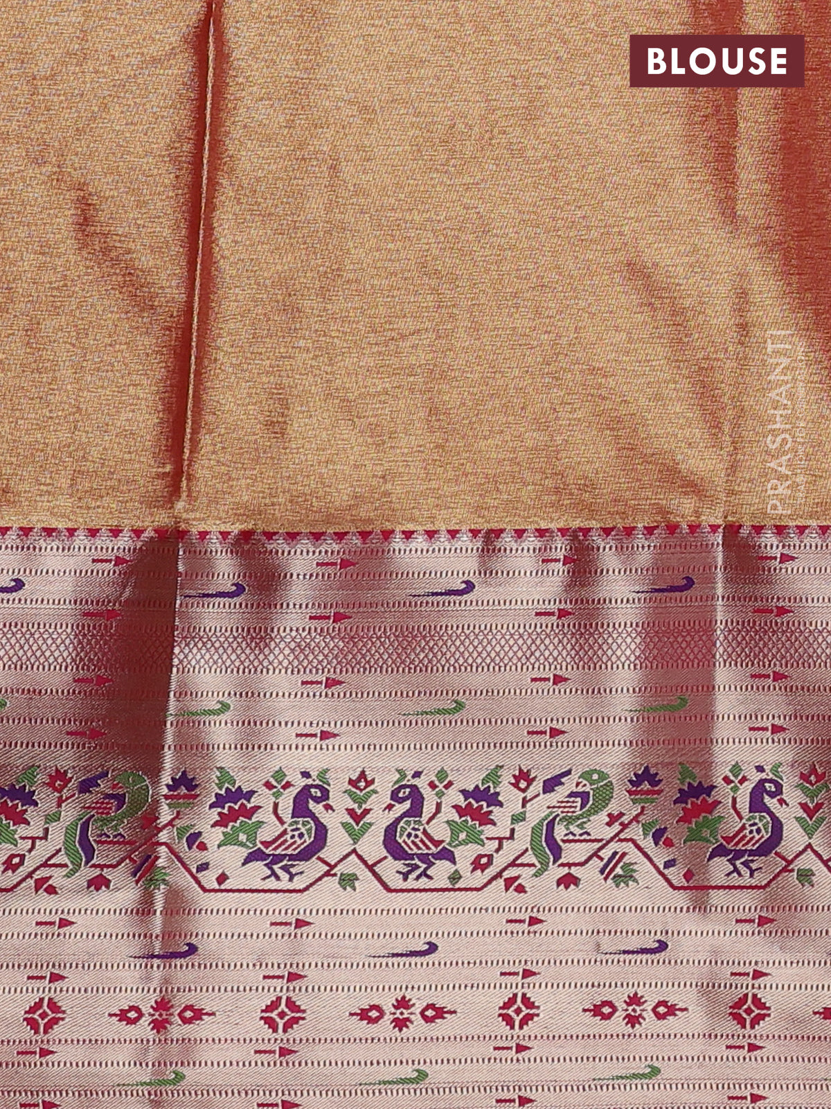 Tissue paithani silk saree pastel pink and pink with allover zari woven brocade weaves and long zari woven paithani style border