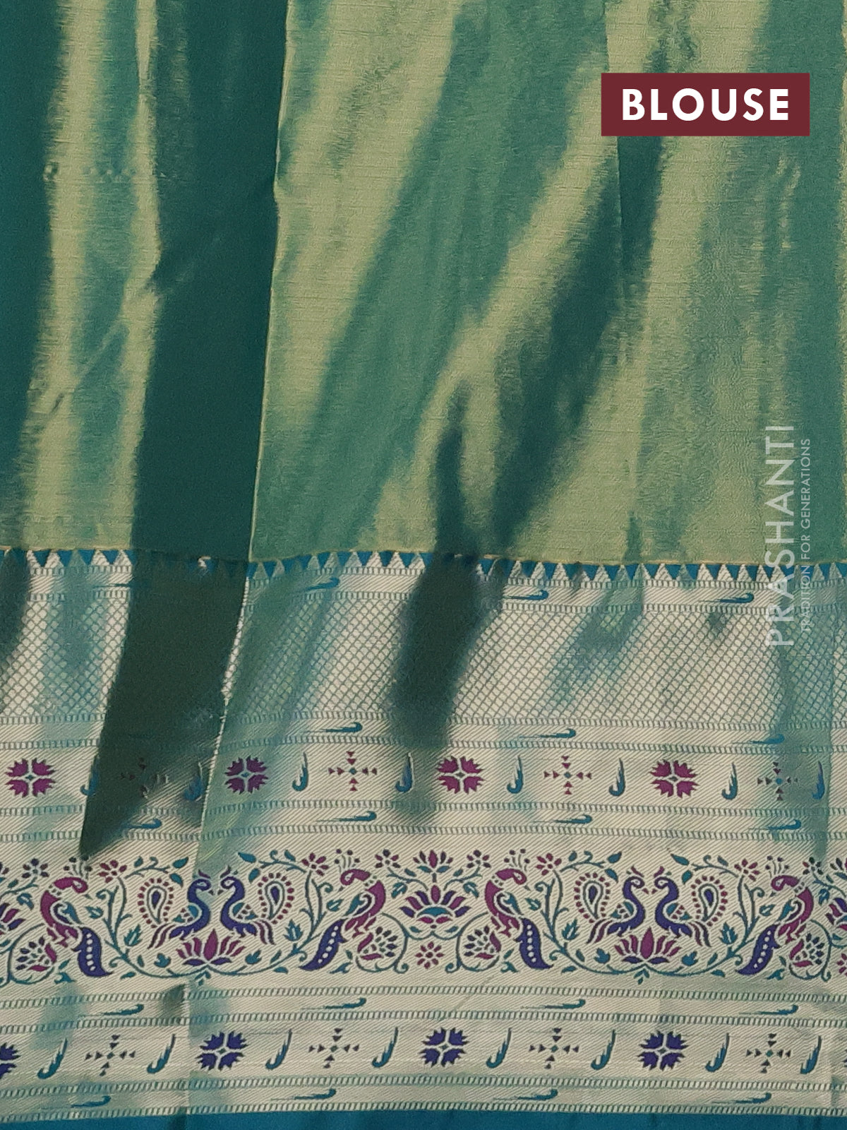 Tissue paithani silk saree sandal and teal green with allover zari woven brocade weaves and long zari woven paithani style border
