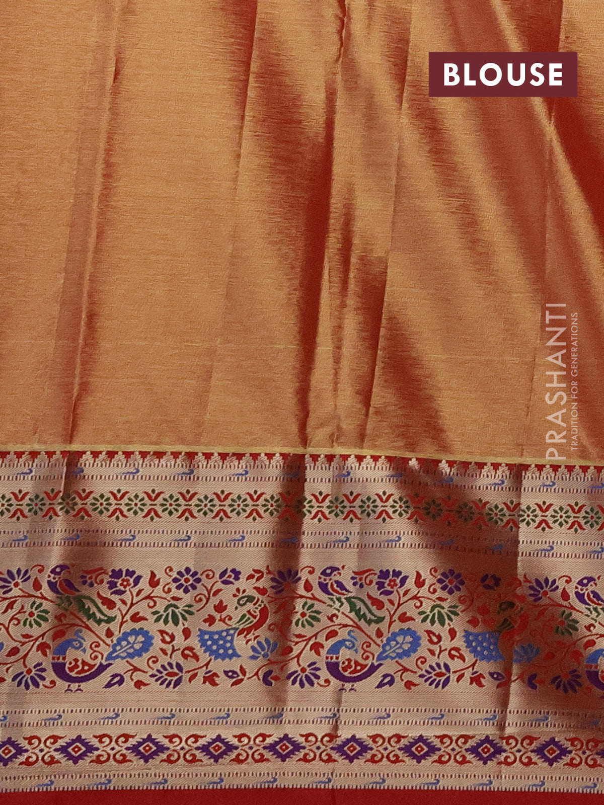 Tissue paithani silk saree teal green and red with allover zari woven brocade weaves and zari woven paithani style border