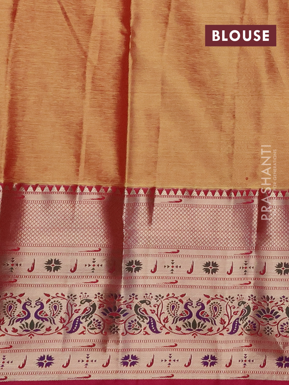 Material : Semi Tissue Paithani Silk Blouse : Attached Length of saree : 6.2 mts (5.5 mts saree & 70... Read more