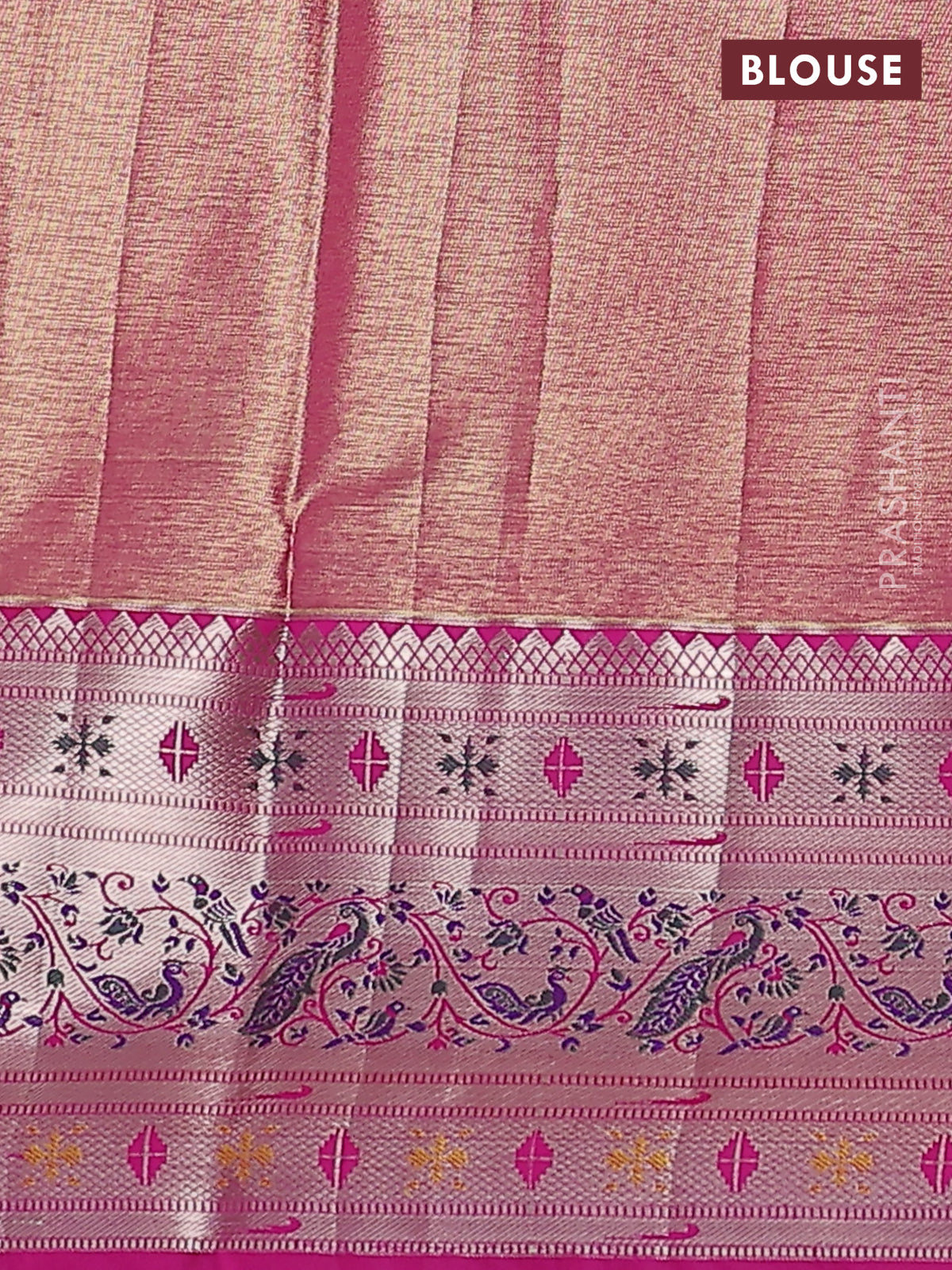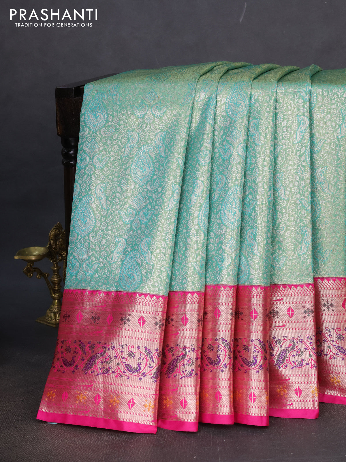 Tissue paithani silk saree teal shade and pink with allover zari woven brocade weaves and zari woven paithani style border