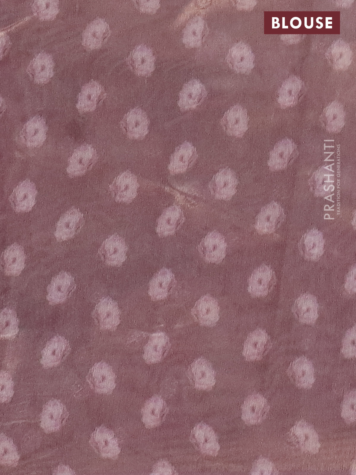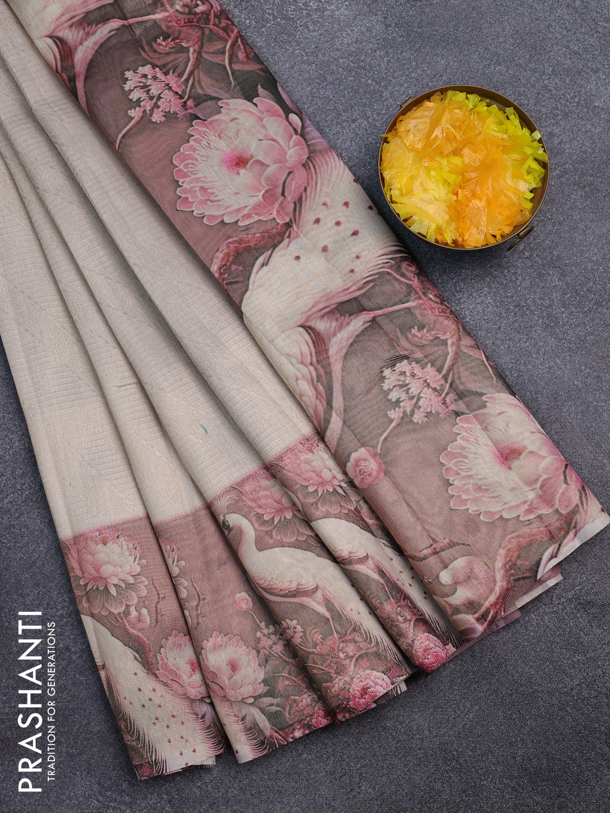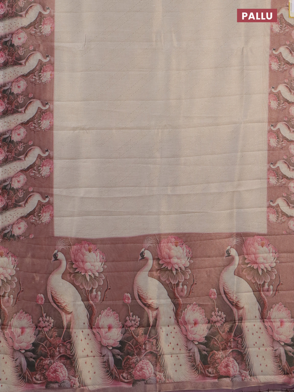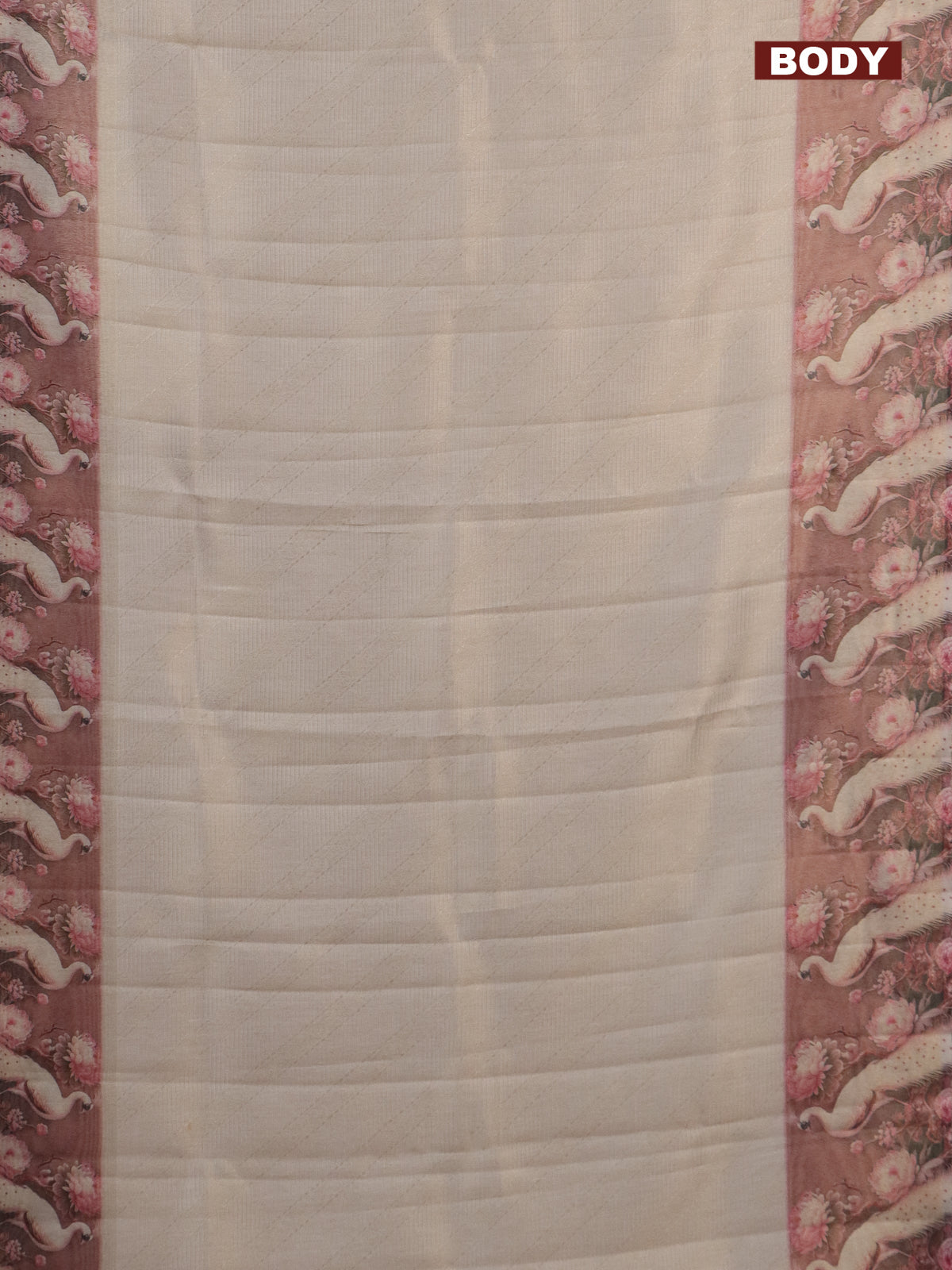 Tissue saree cream and pastel pink with allover zari weaves and floral digital printed border