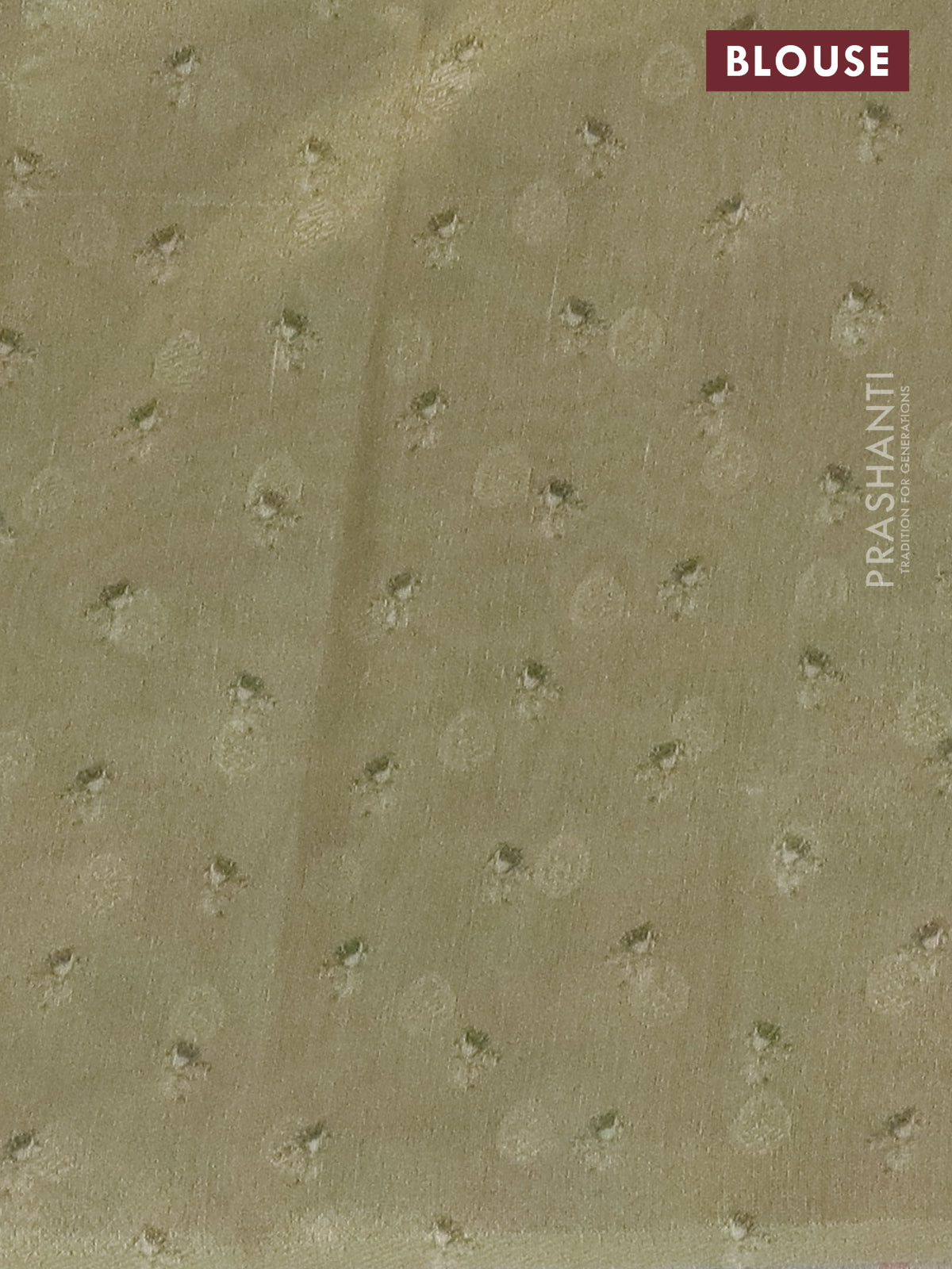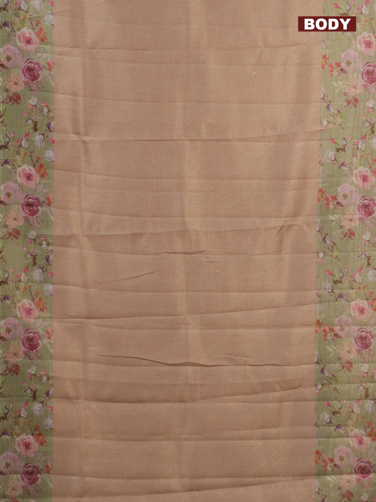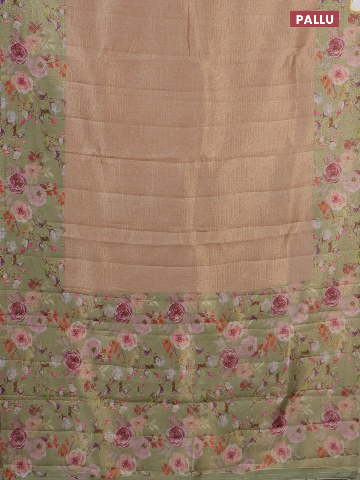 Tissue saree mild peach and pista green with allover zari weaves and floral digital printed border