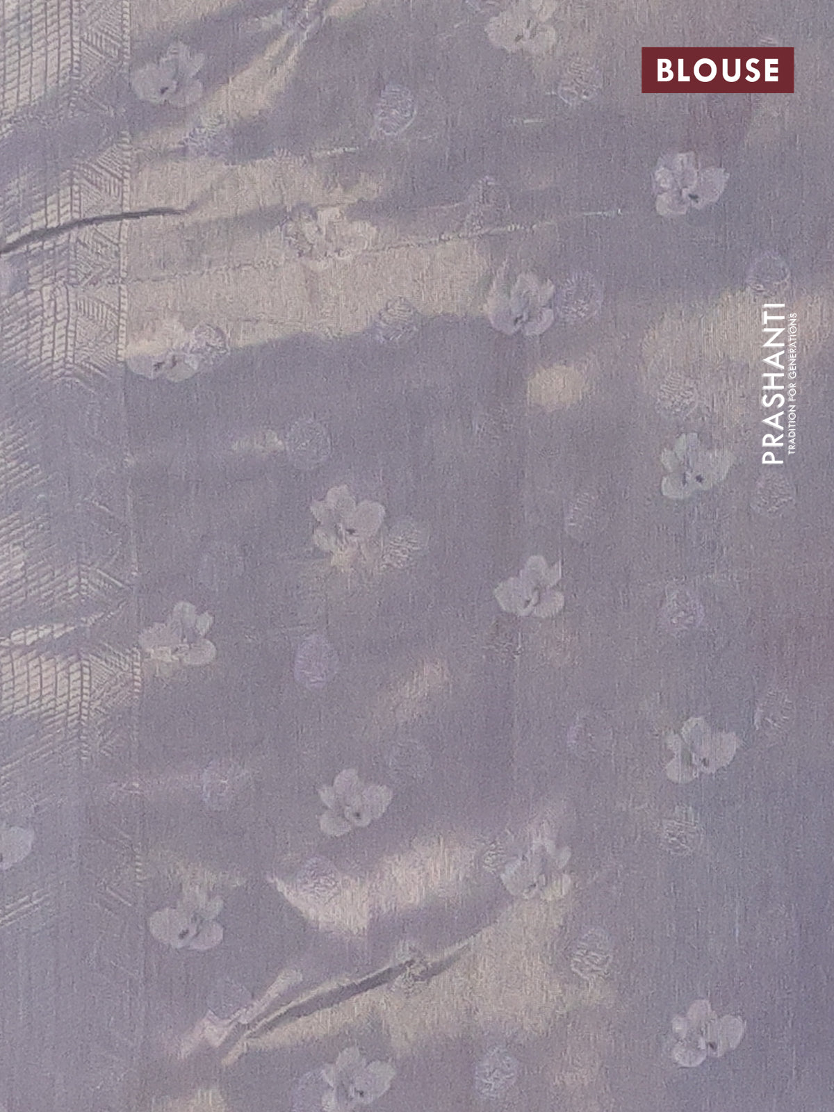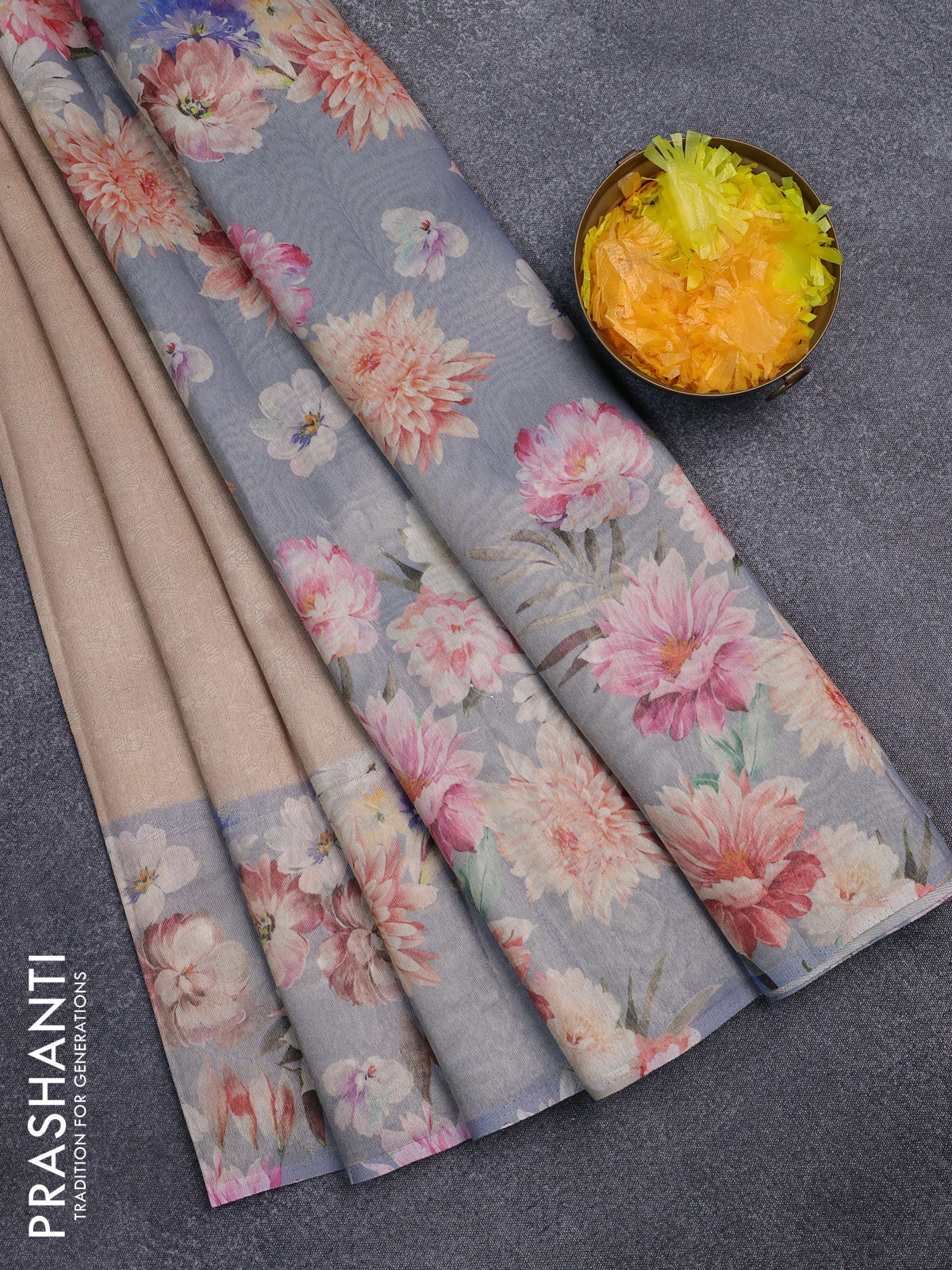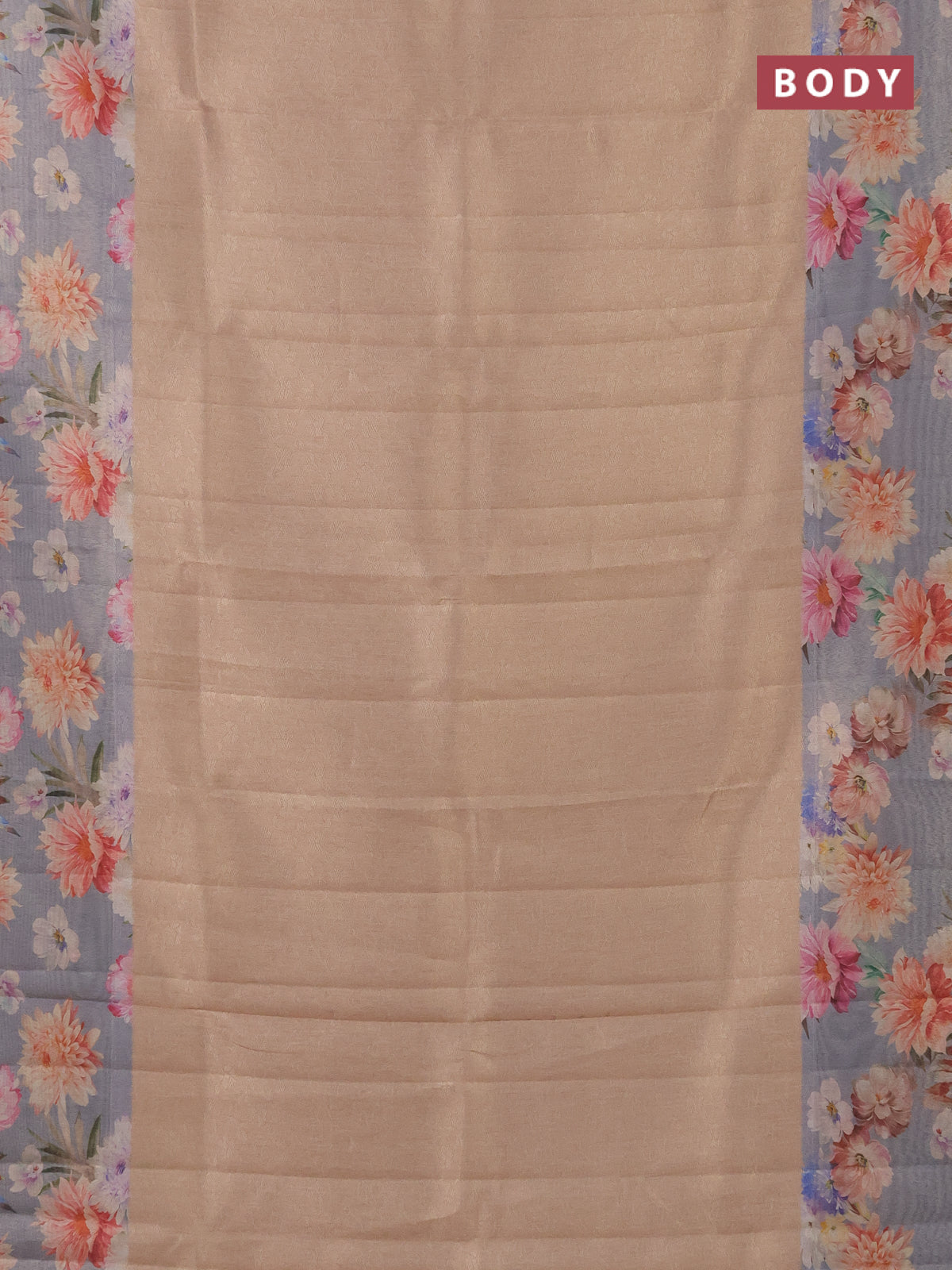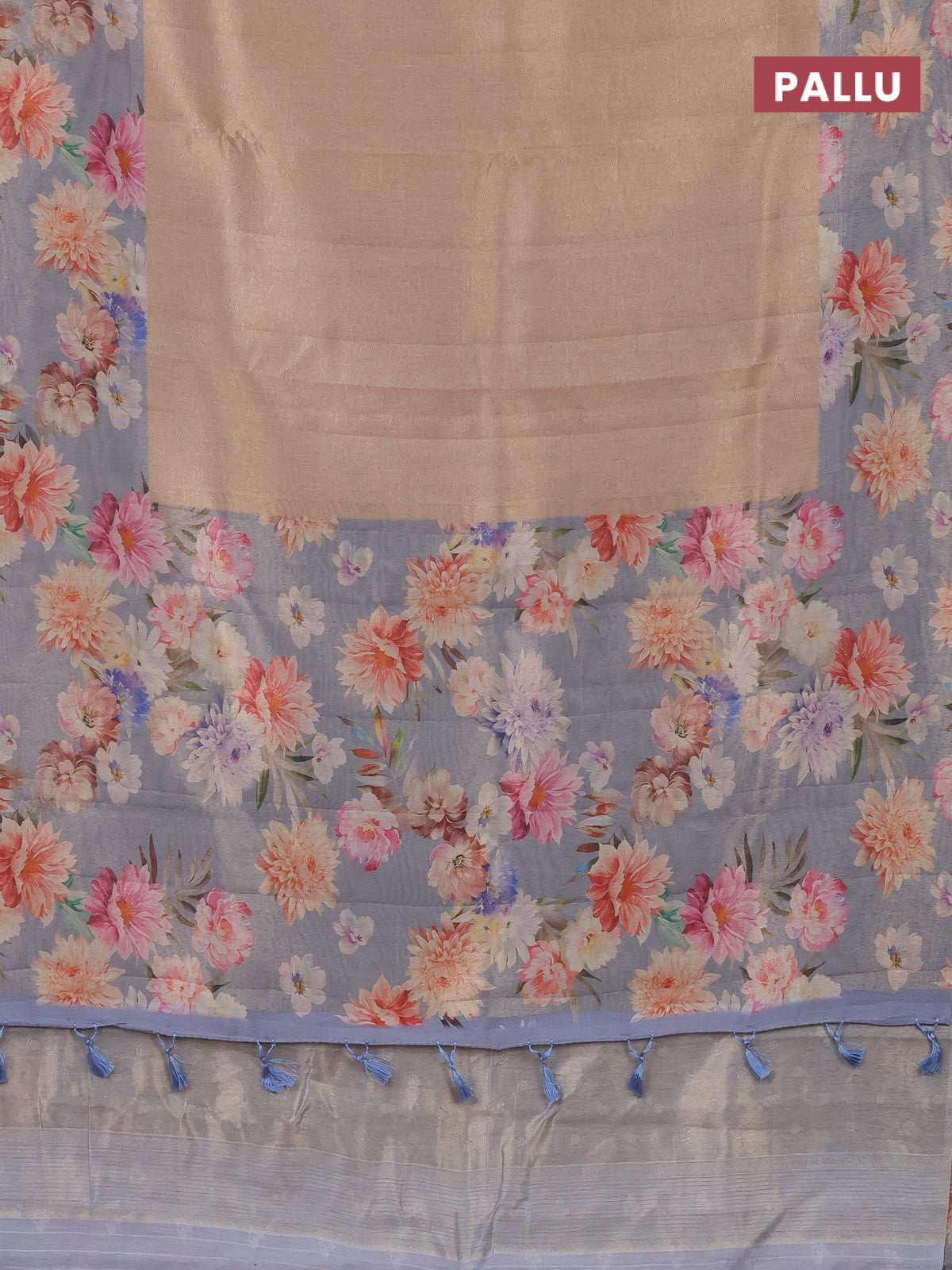 Tissue saree sandal and pastel blue with allover zari weaves and floral digital printed border