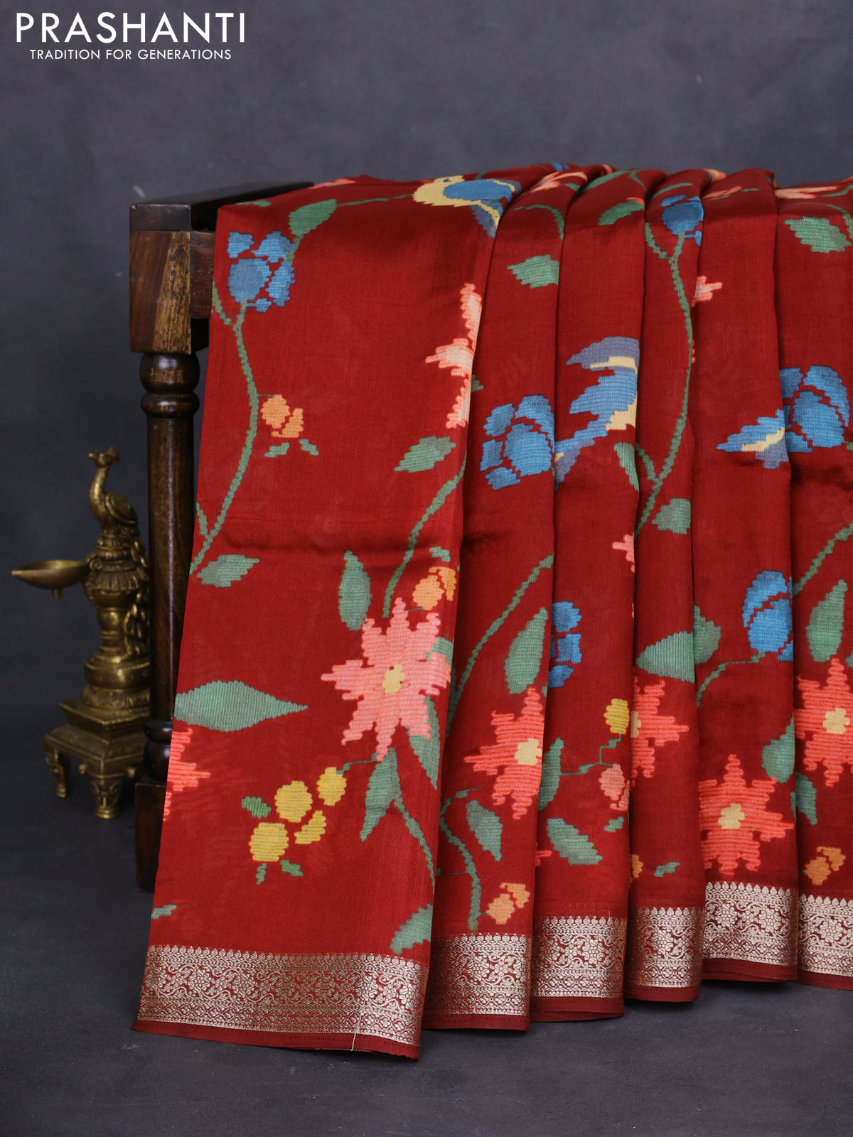 Tussar georgette silk saree maroon with allover digital prints and zari woven border
