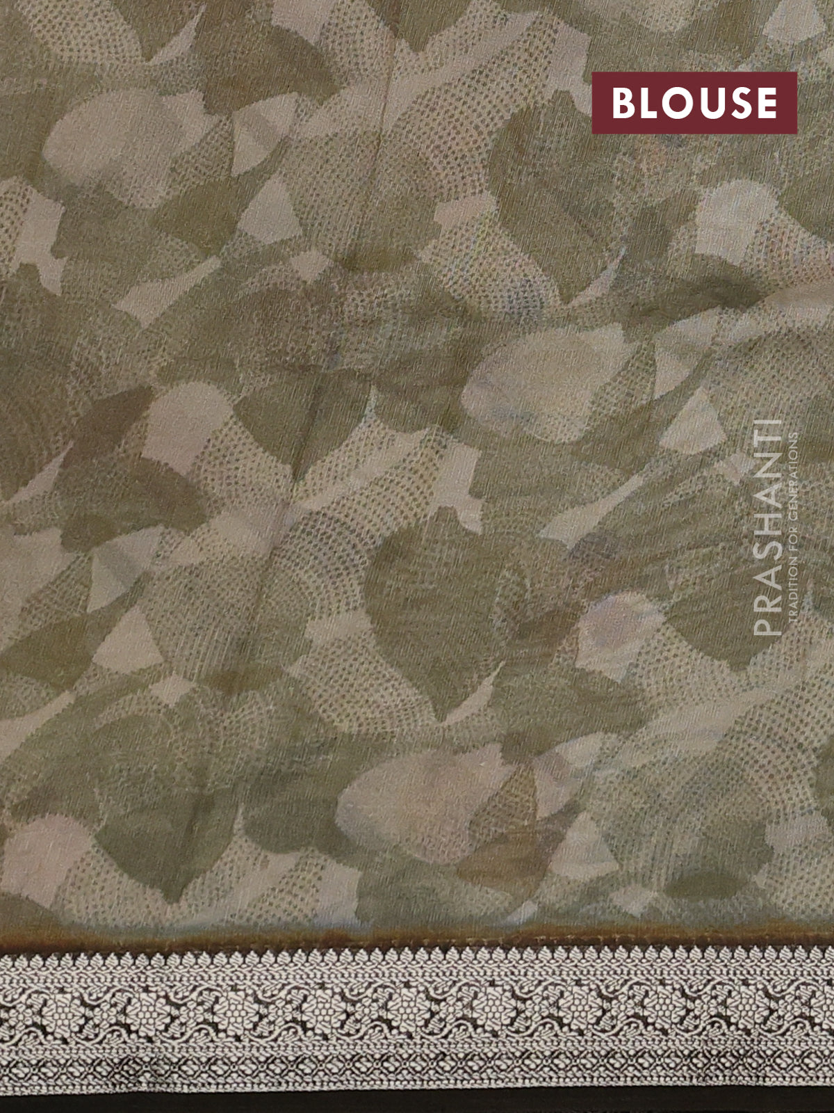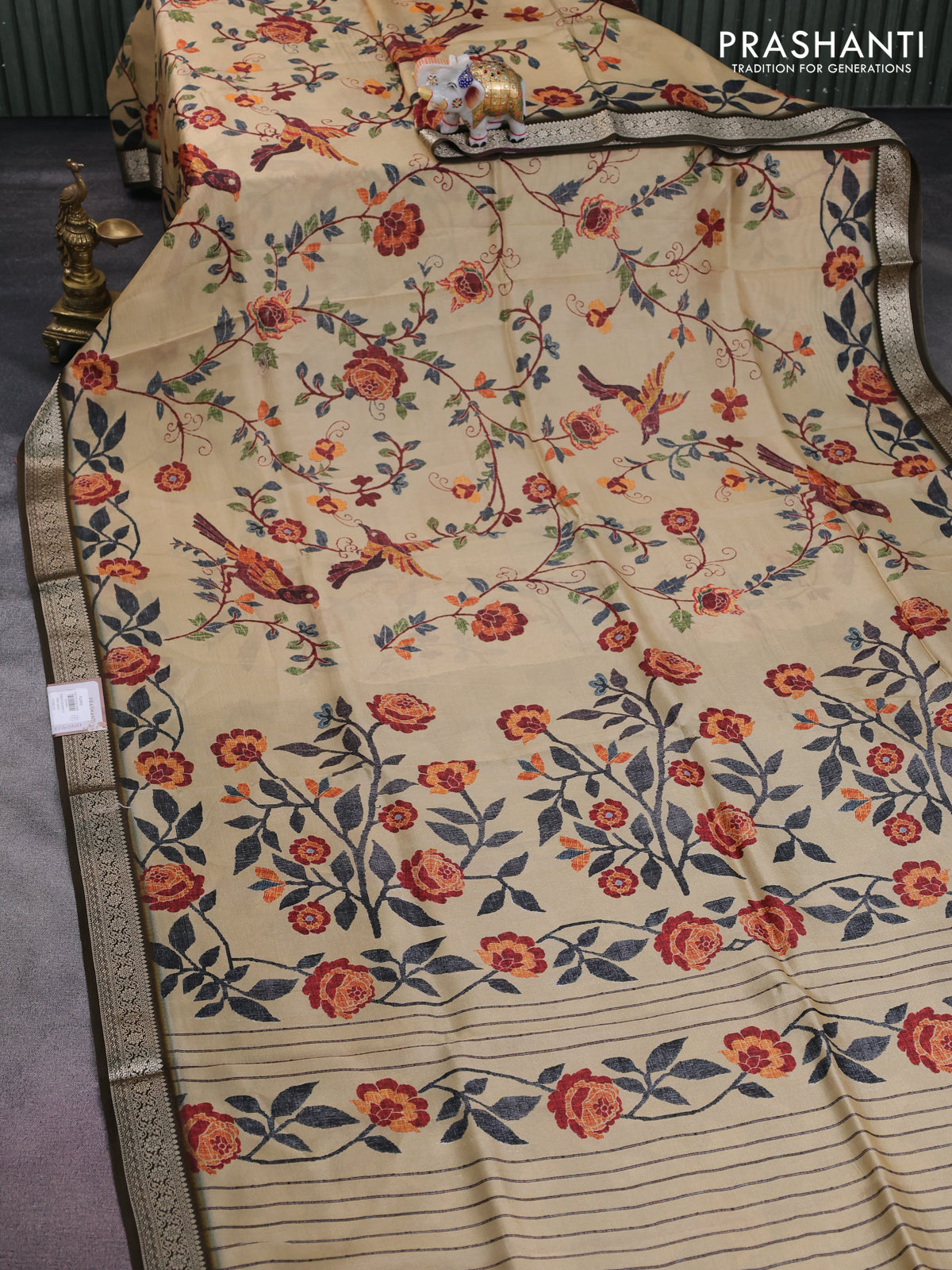 Tussar georgette silk saree sandal and brown with allover digital prints and zari woven border