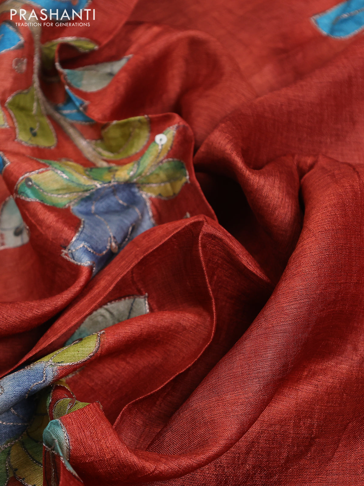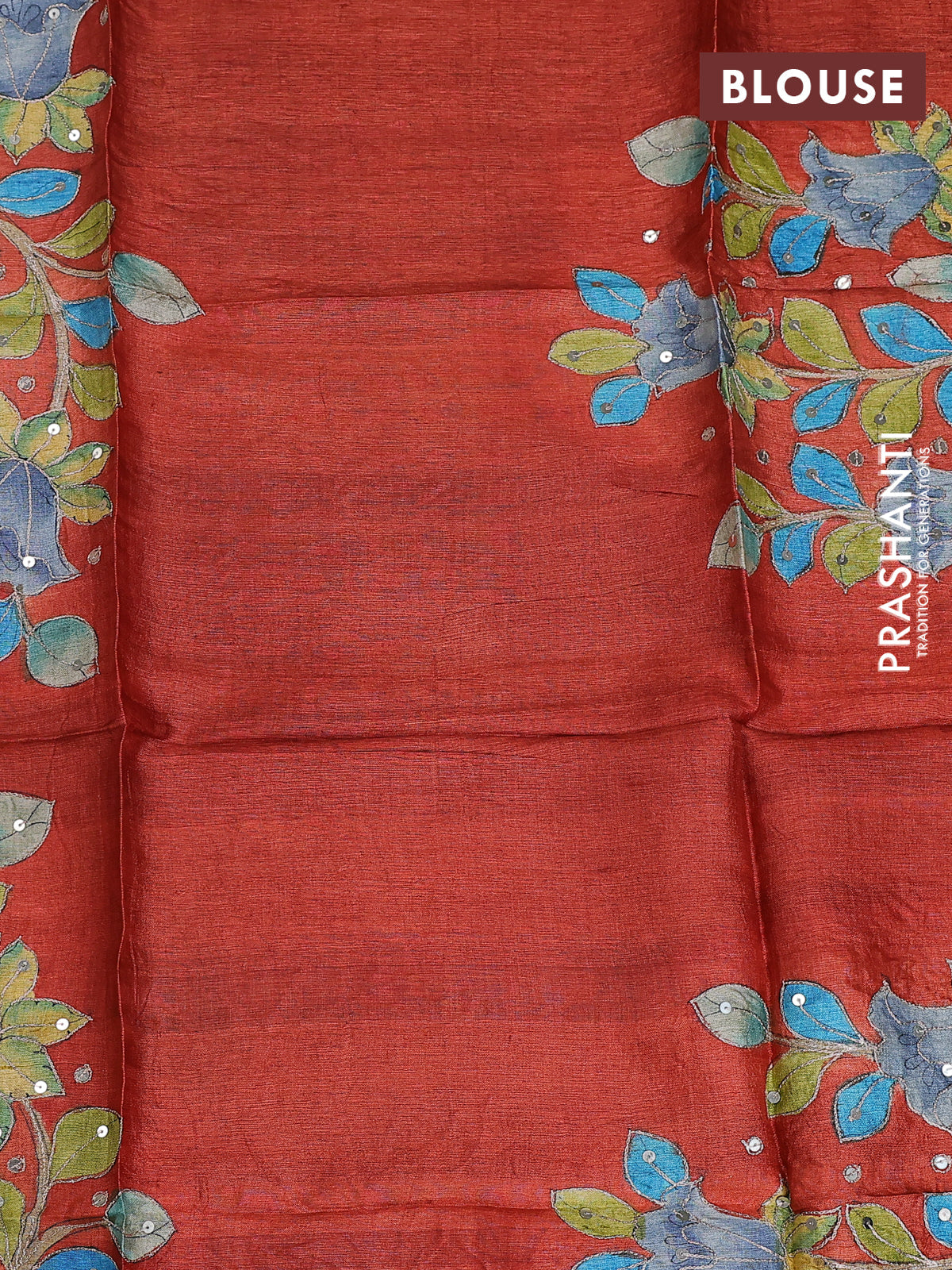 Tussar hand painted blouse piece orange with allover kalamkari prints & sequin work