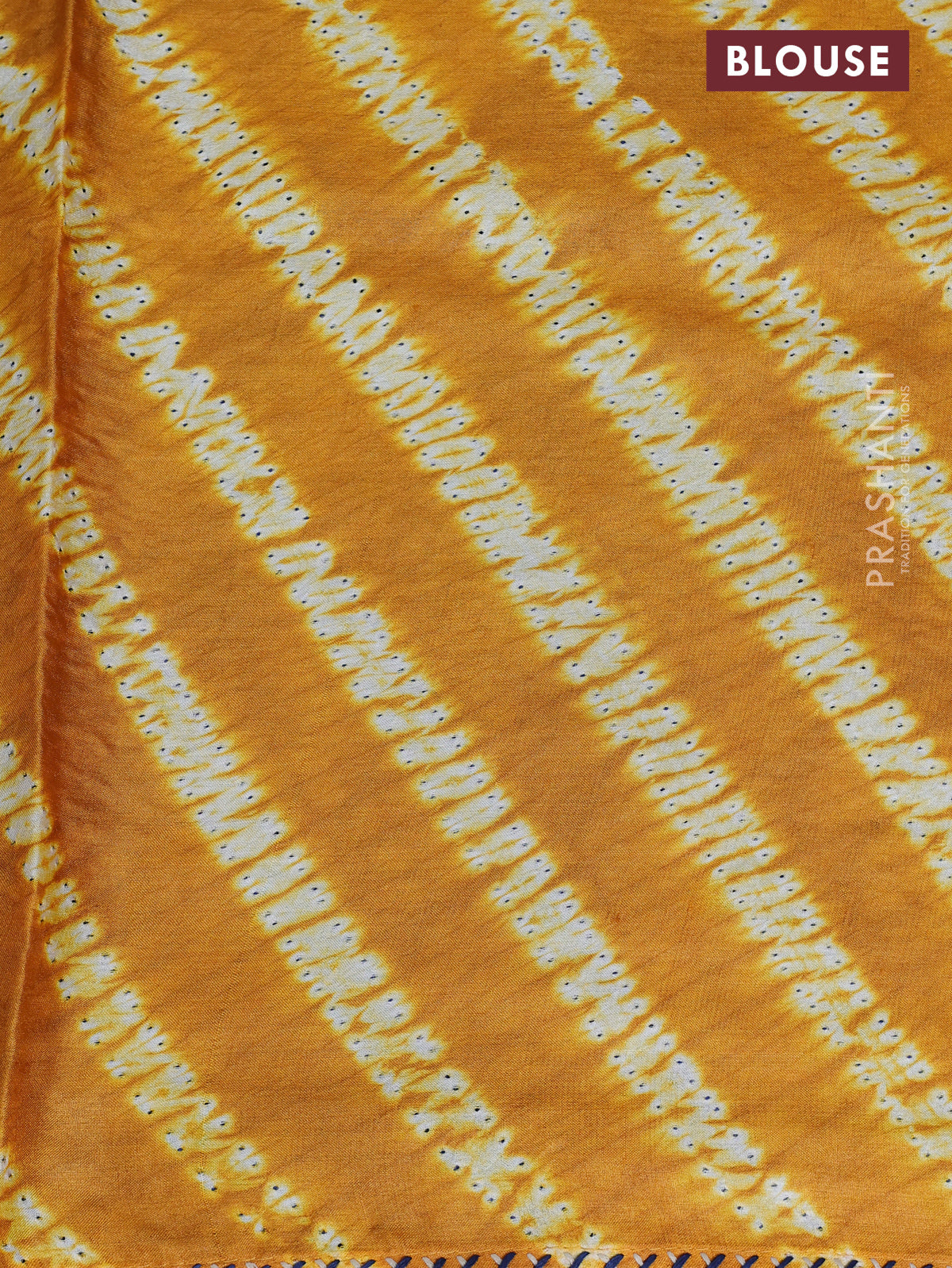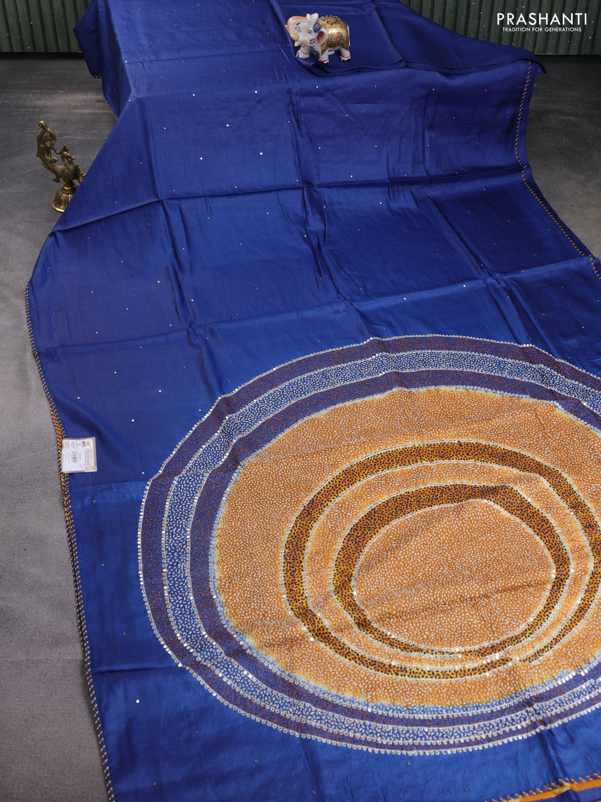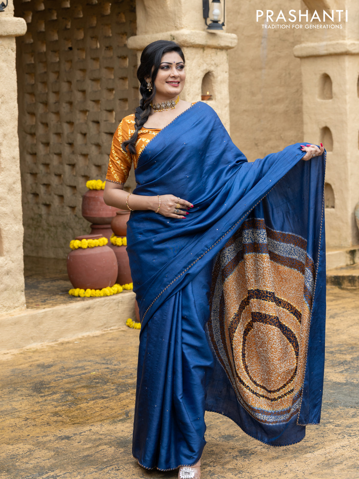 Tussar silk saree blue with centre placement style embroidery & mirror work and embroidery border