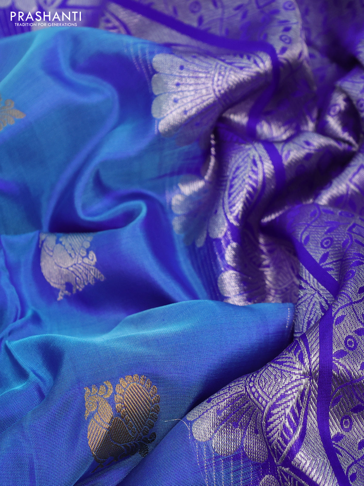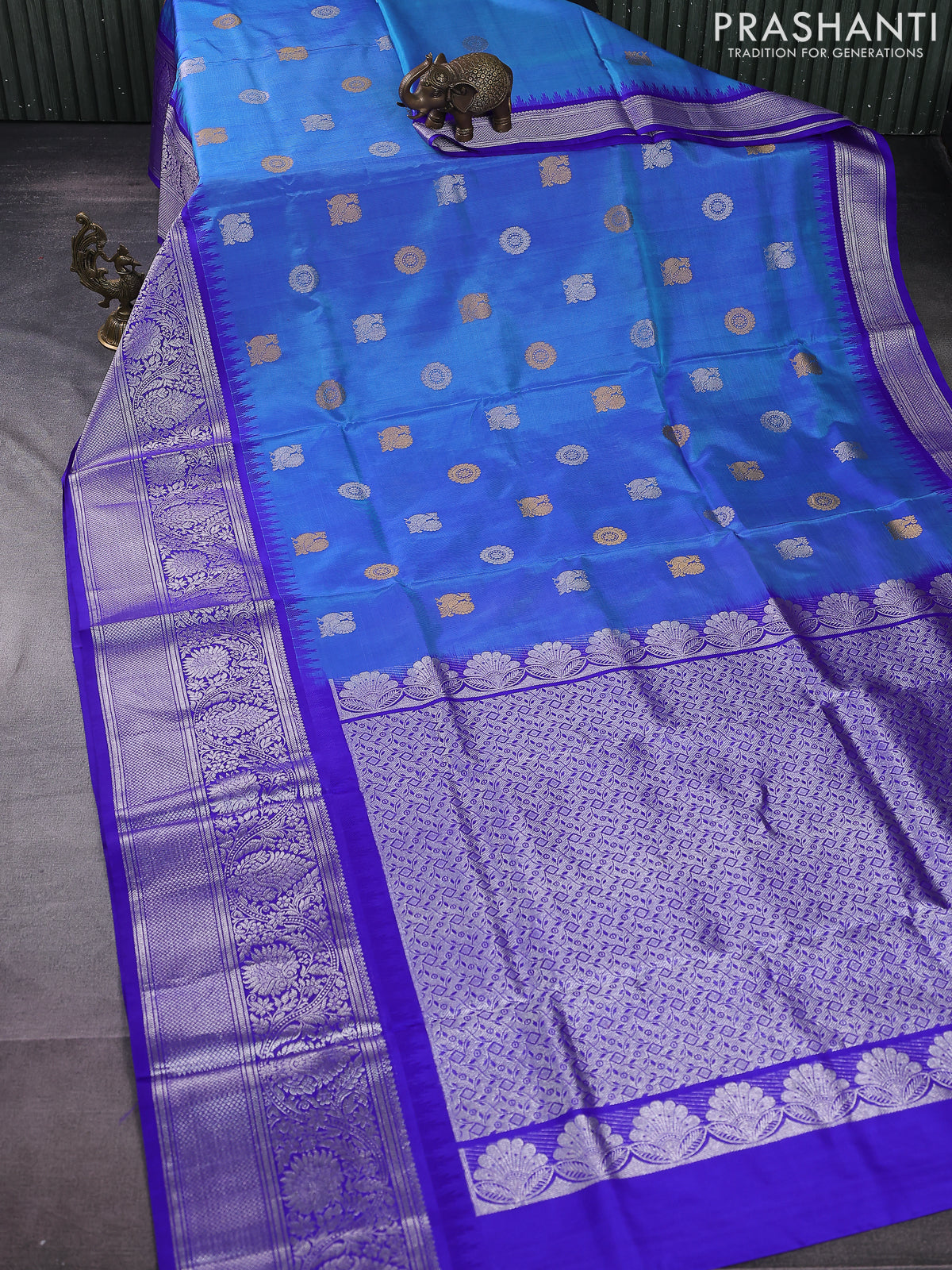 Venkatagiri silk saree cs blue and royal blue with annam & rudhraksha zari woven buttas and long silver zari woven border