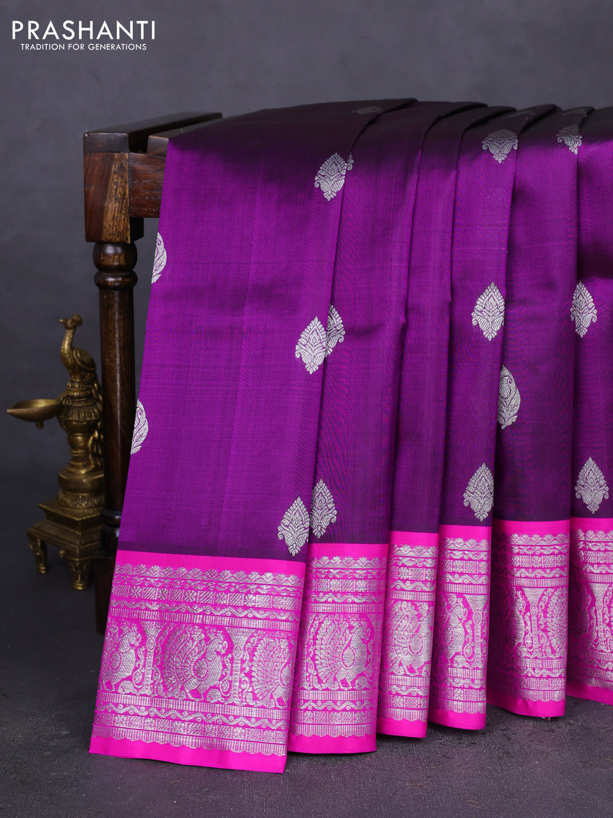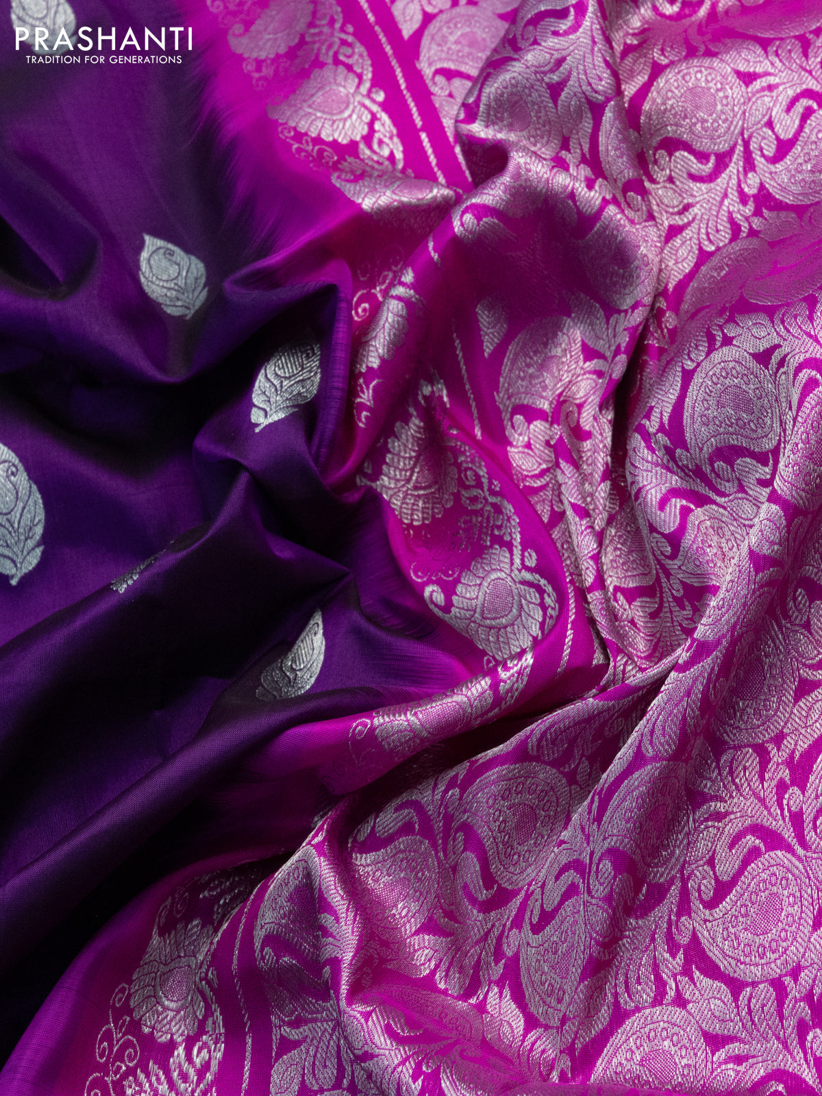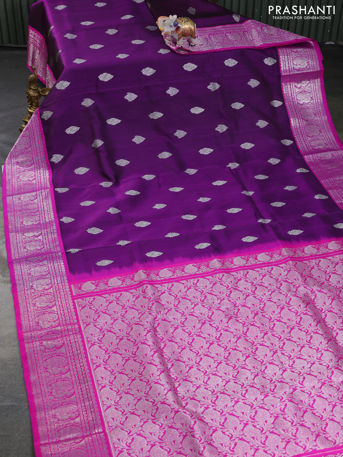 Venkatagiri silk saree deep purple and pink with silver zari woven buttas and silver zari woven border