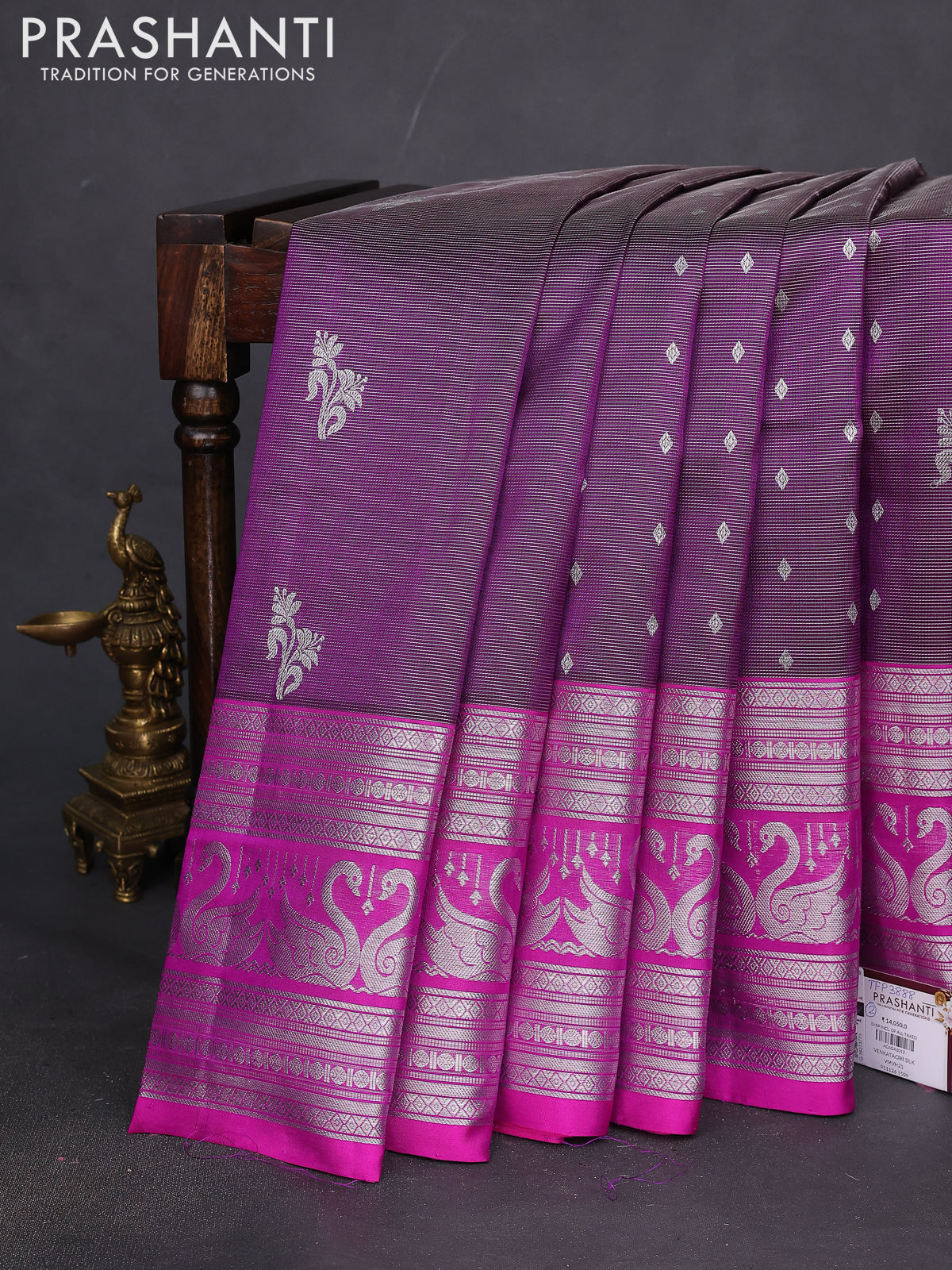 Venkatagiri silk saree deep purple and purple with allover silver zari weaves & buttas and long silver zari woven border