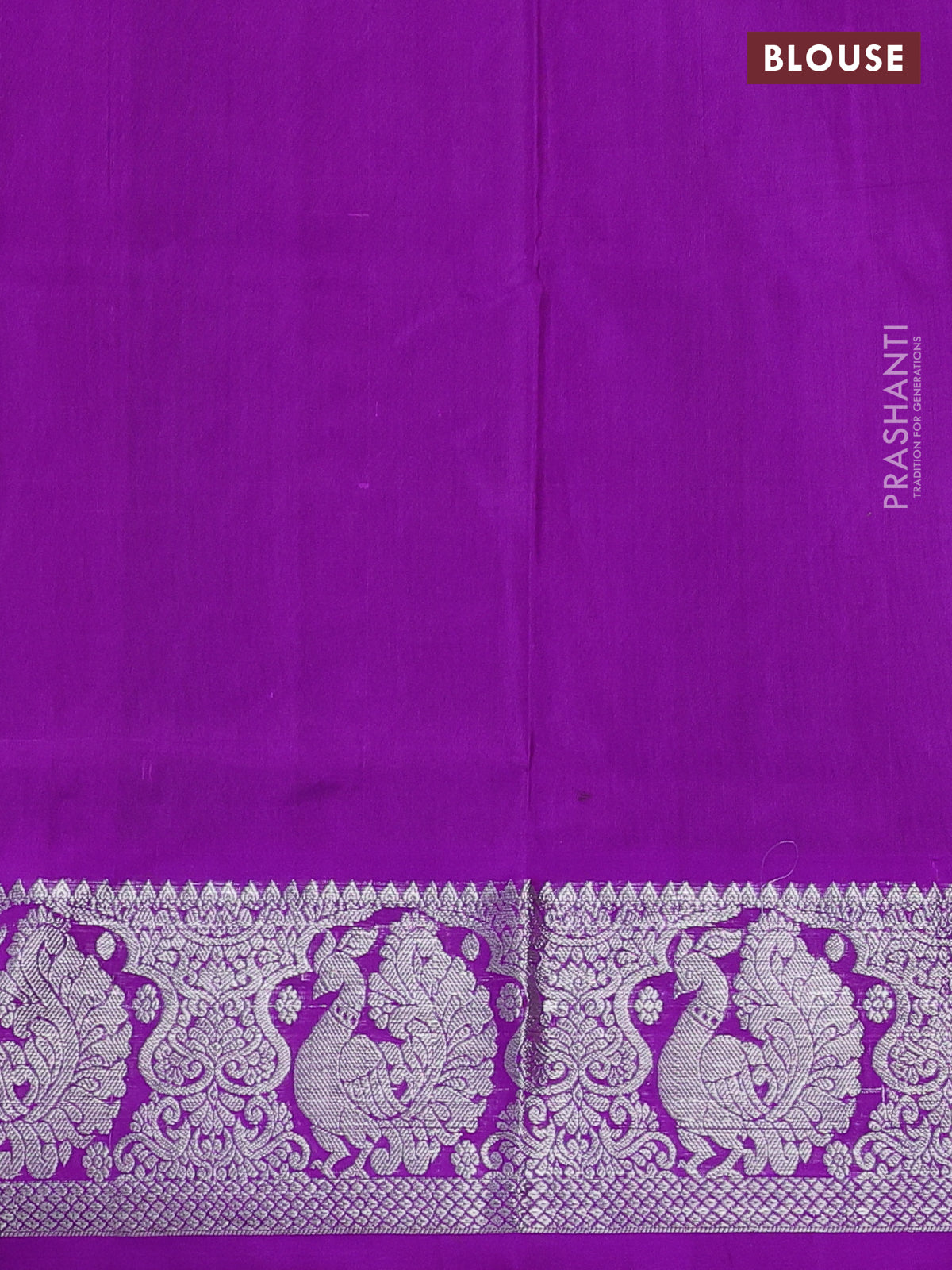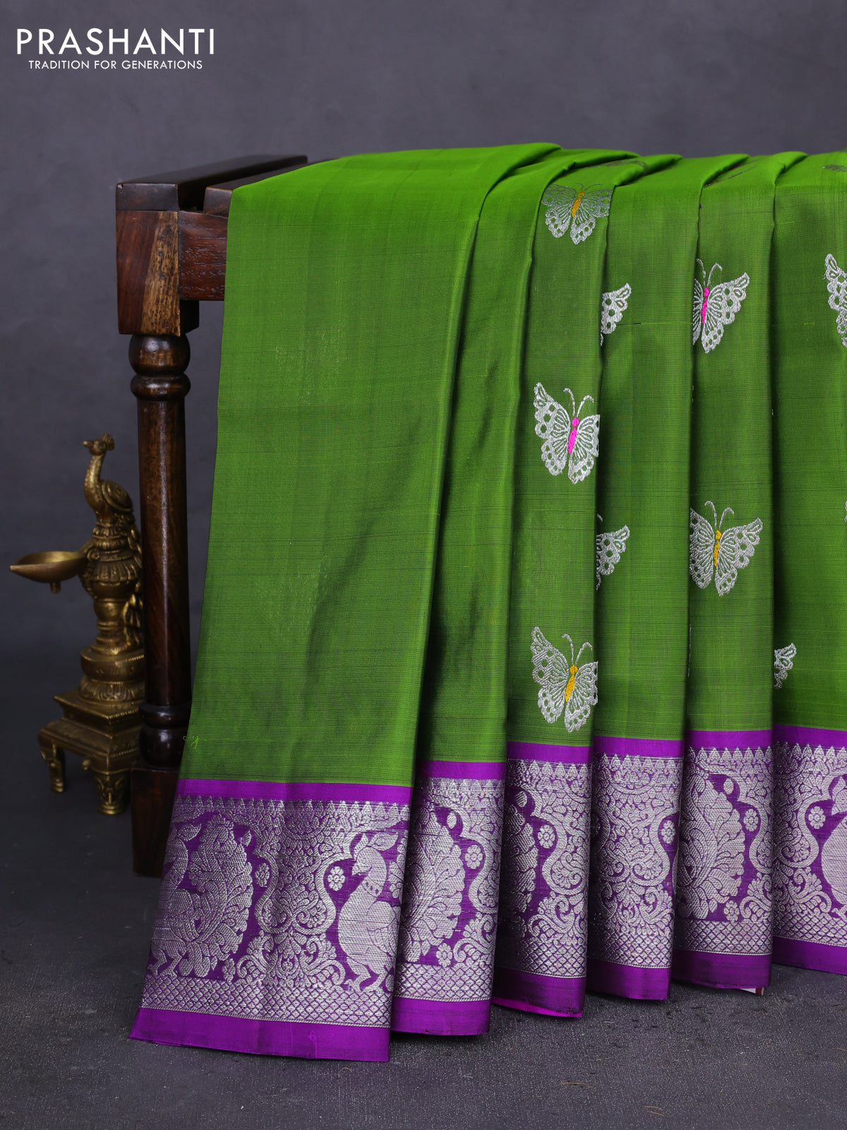 Venkatagiri silk saree light green and deep purple with silver zari woven butterfly buttas and silver zari woven border