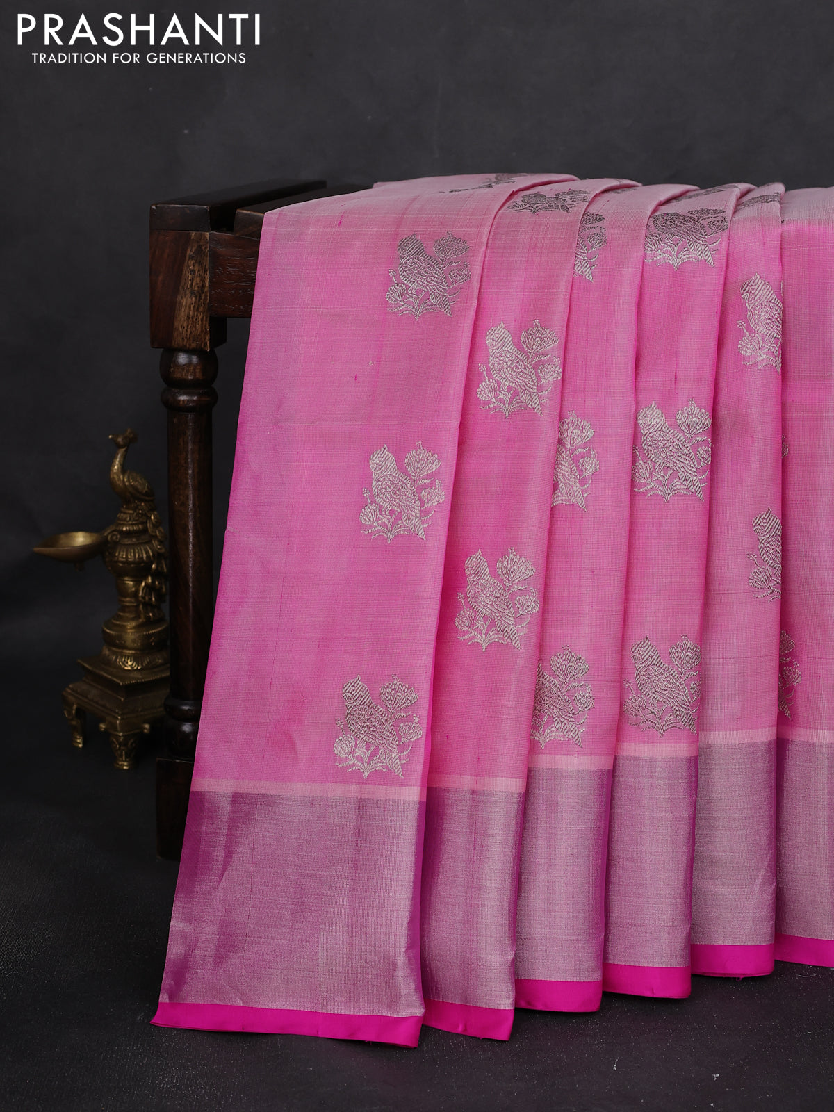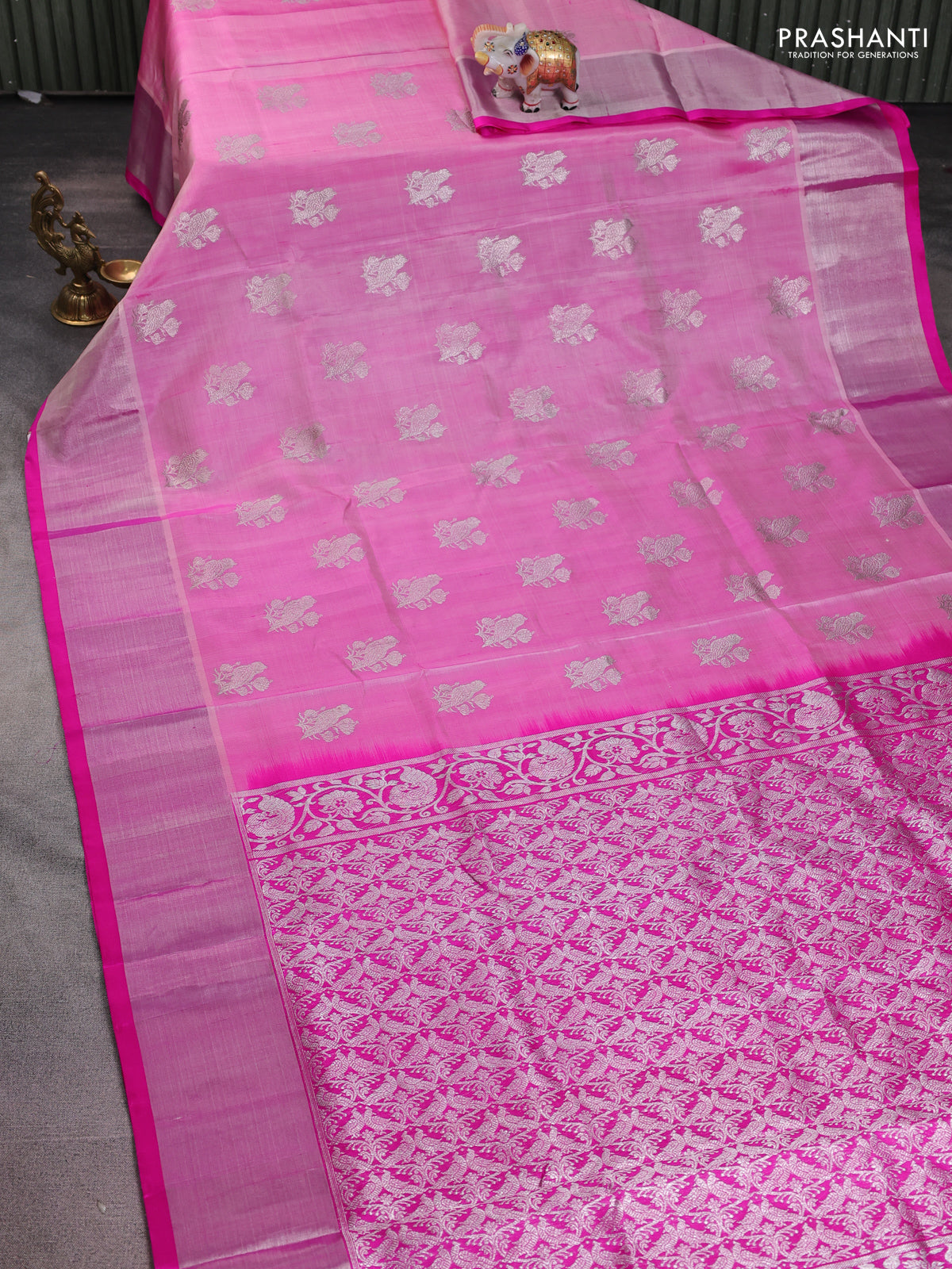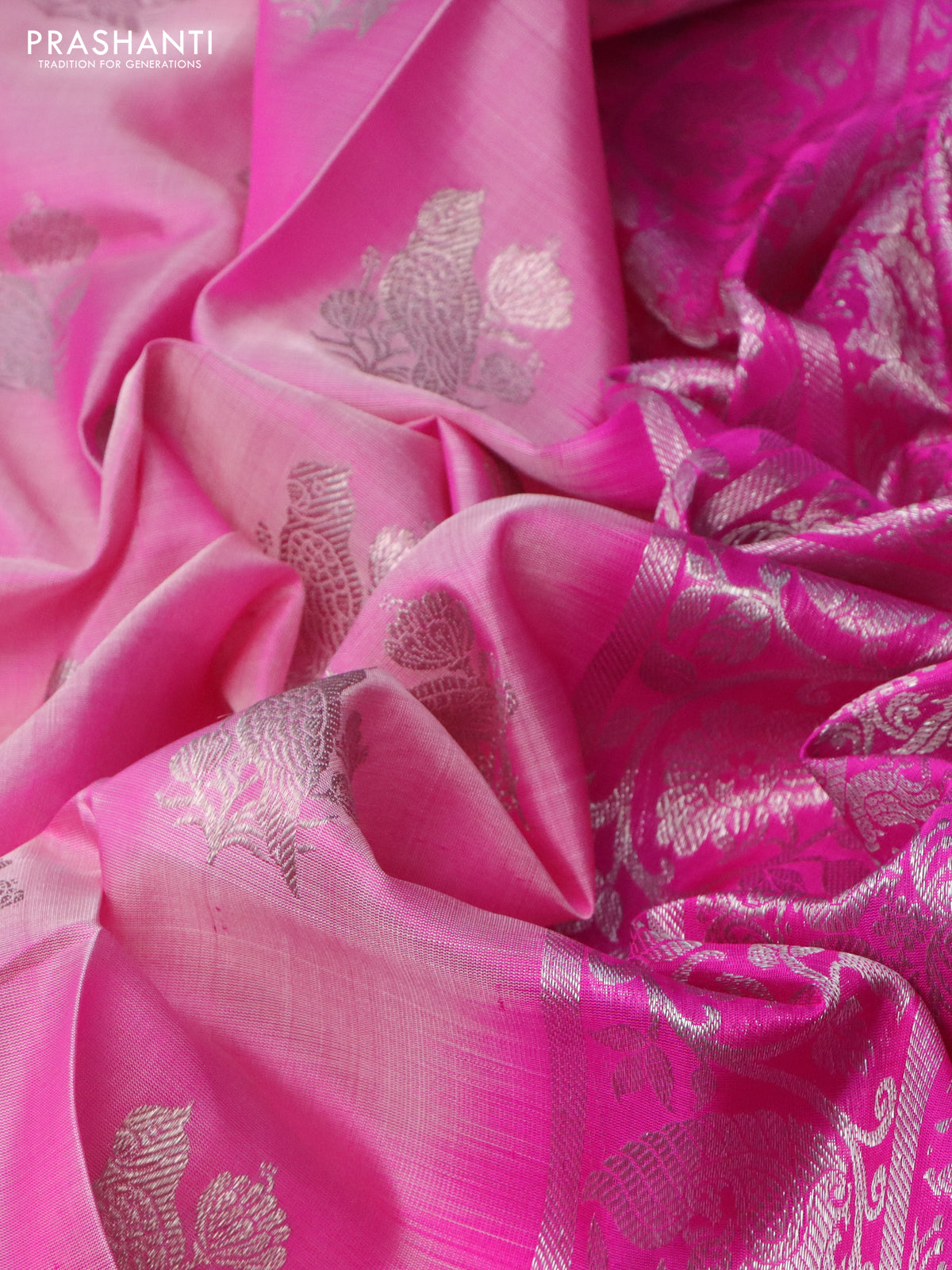 Venkatagiri silk saree light pink and pink with silver zari woven buttas and silver zari woven border