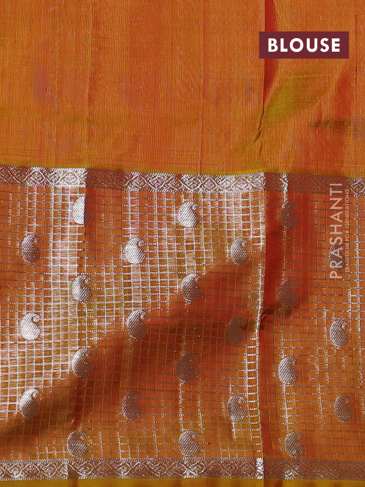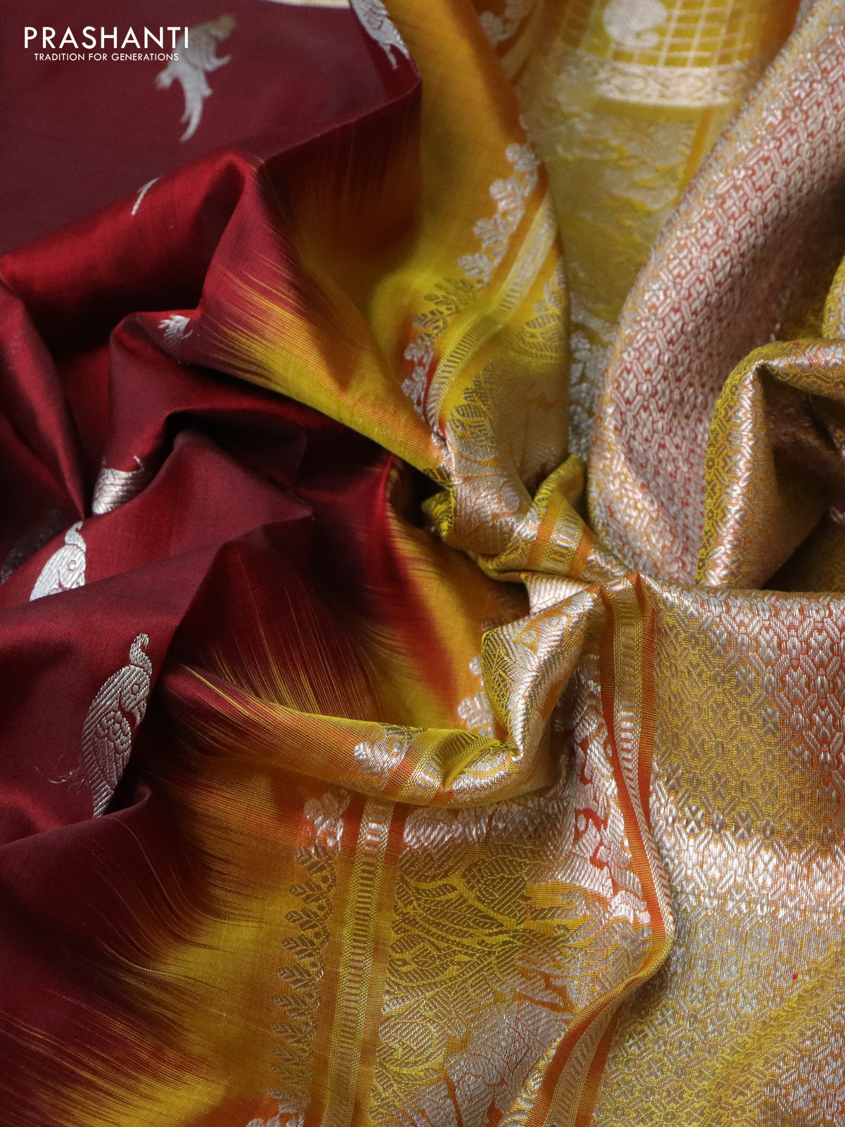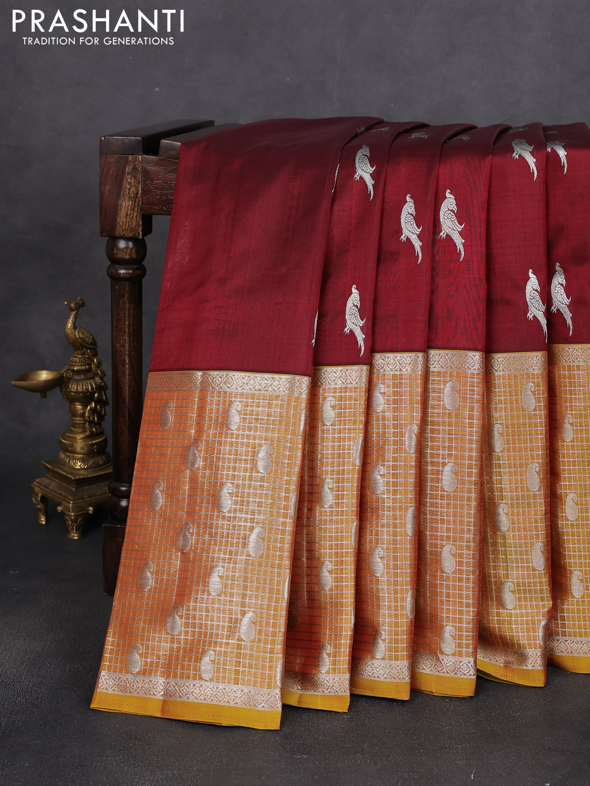 Venkatagiri silk saree maroon and yellow shade with silver zari woven buttas and long silver zari checked border
