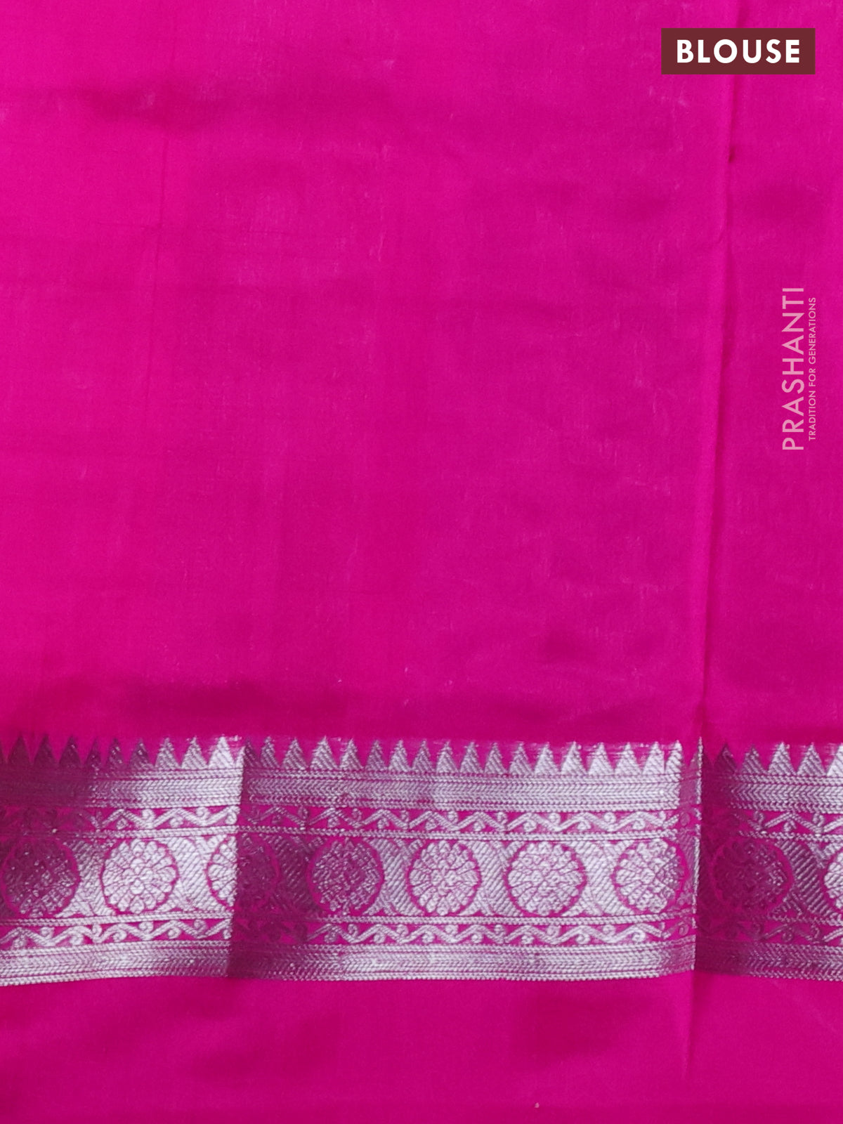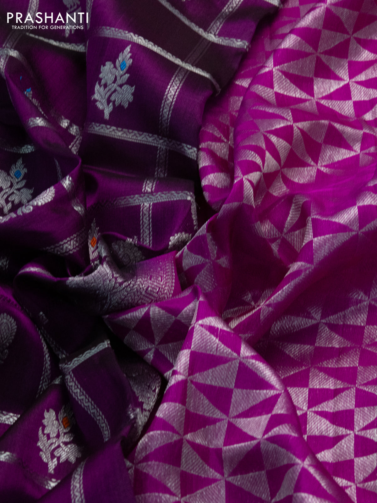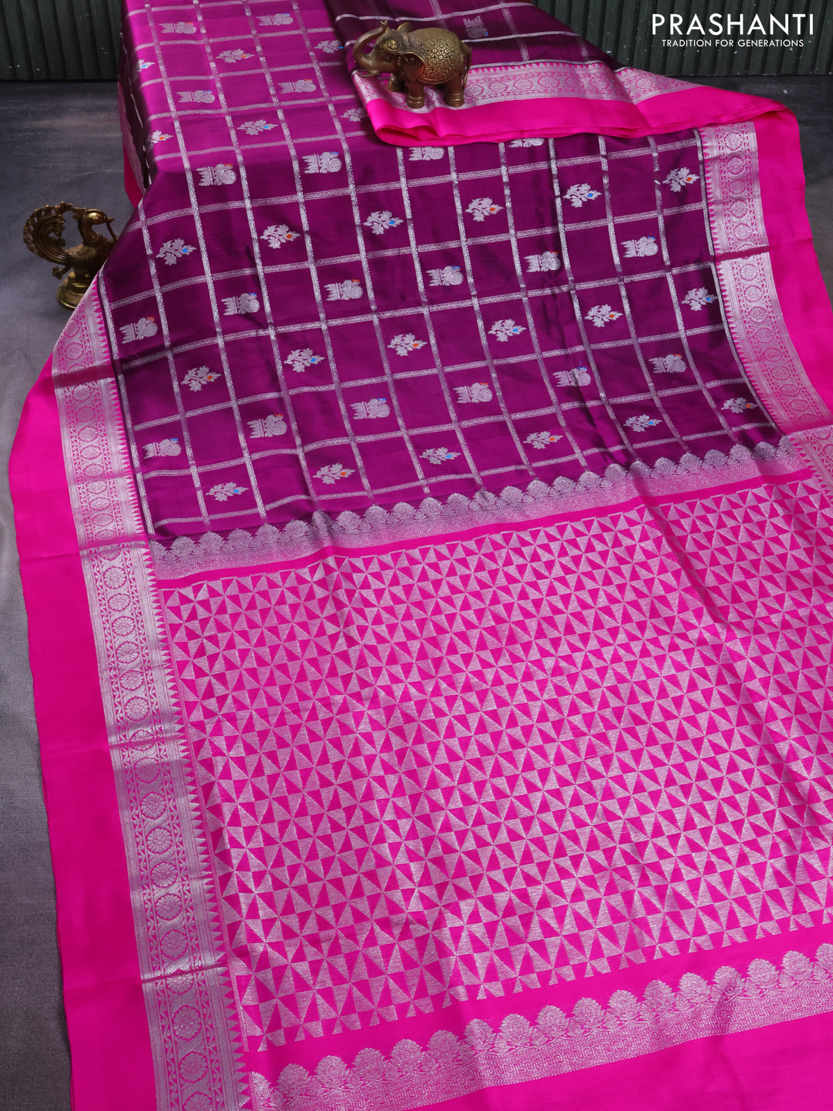 Venkatagiri silk saree purple and pink with allover silver zari checks & buttas and silver zari woven simple border