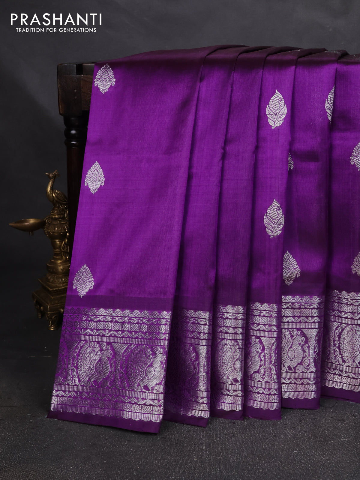 Venkatagiri silk saree purple with silver zari woven buttas and silver zari woven border