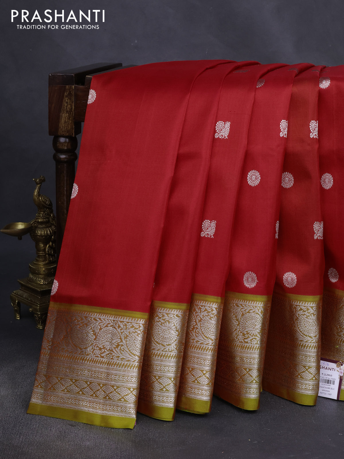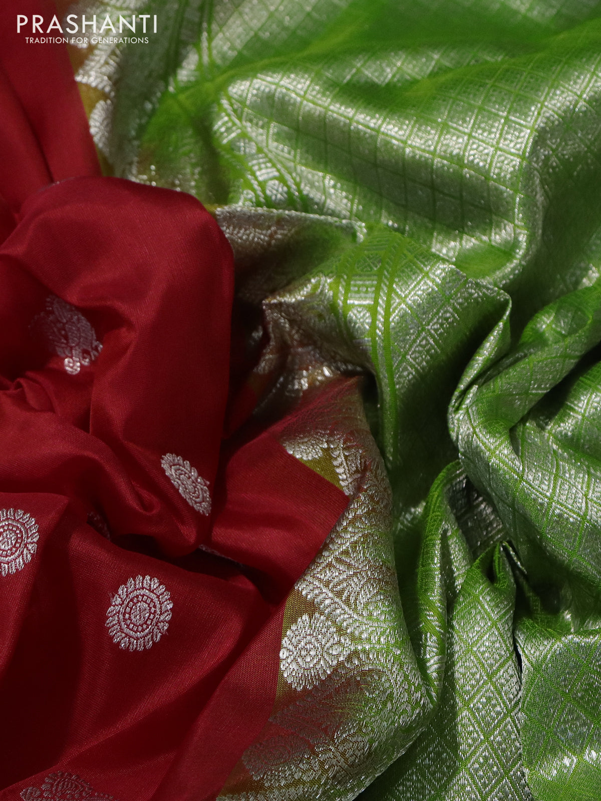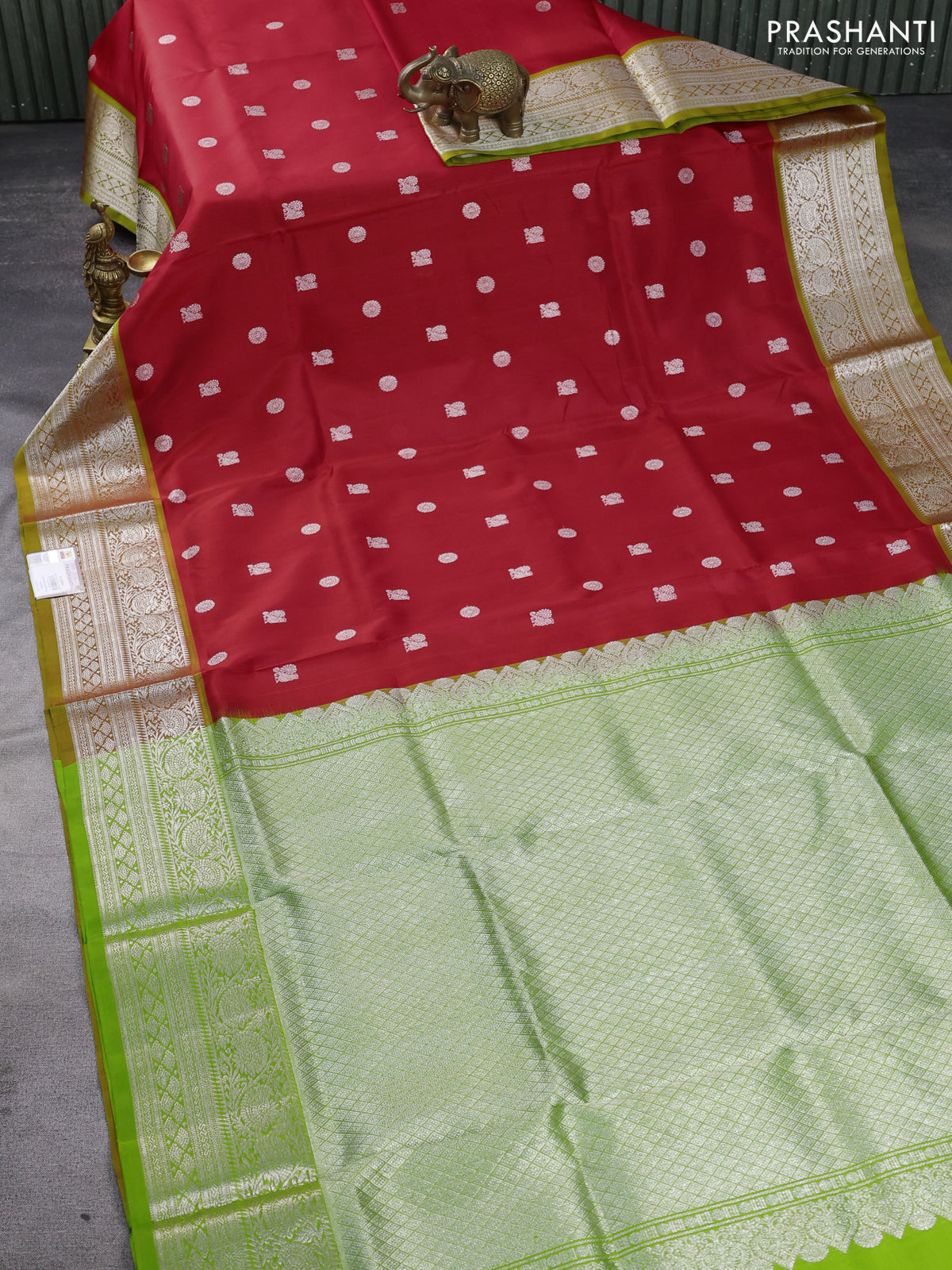Venkatagiri silk saree red and dual shade of green with silver zari woven annam & rudhraksha buttas and rich silver zari woven border