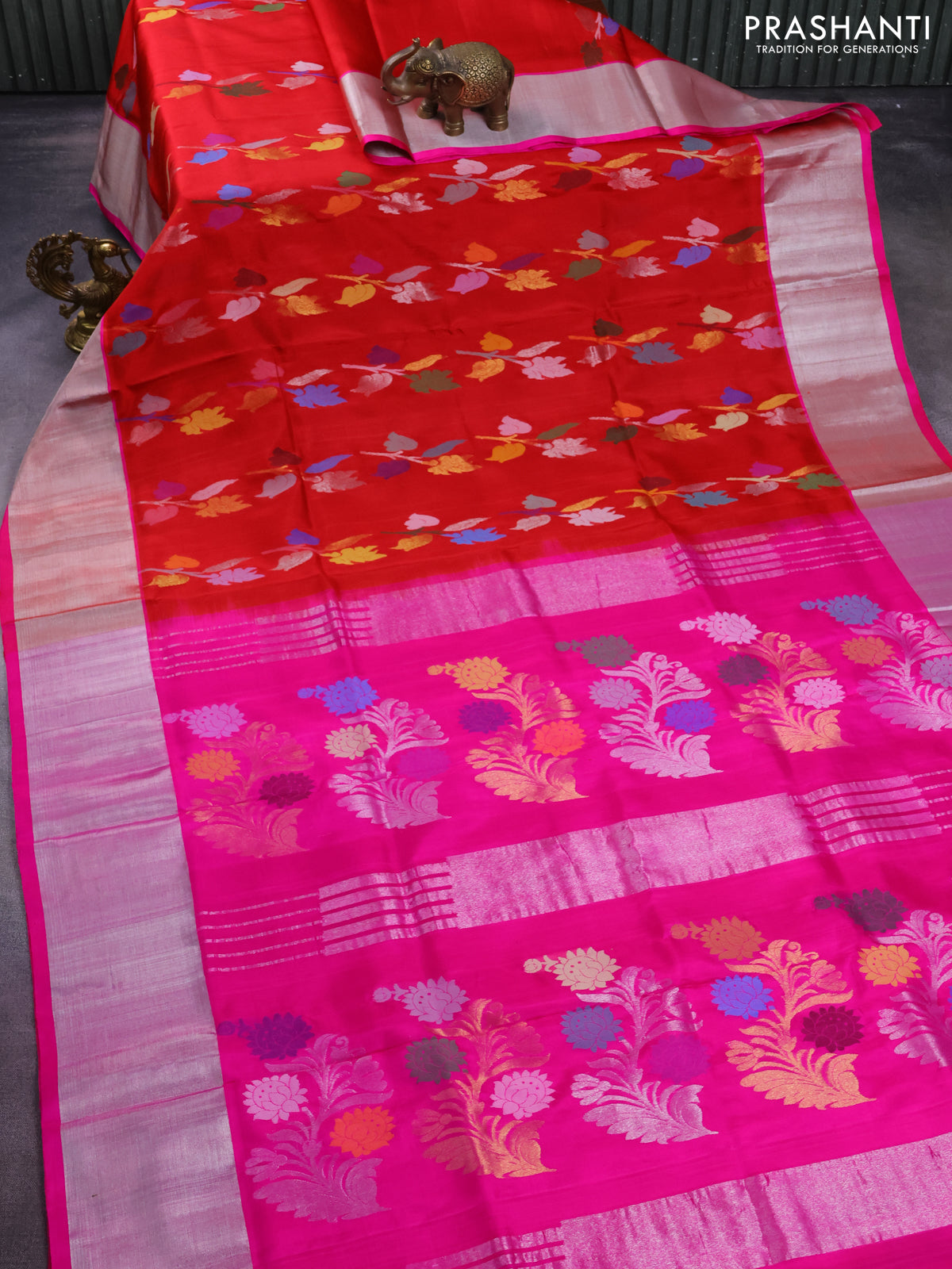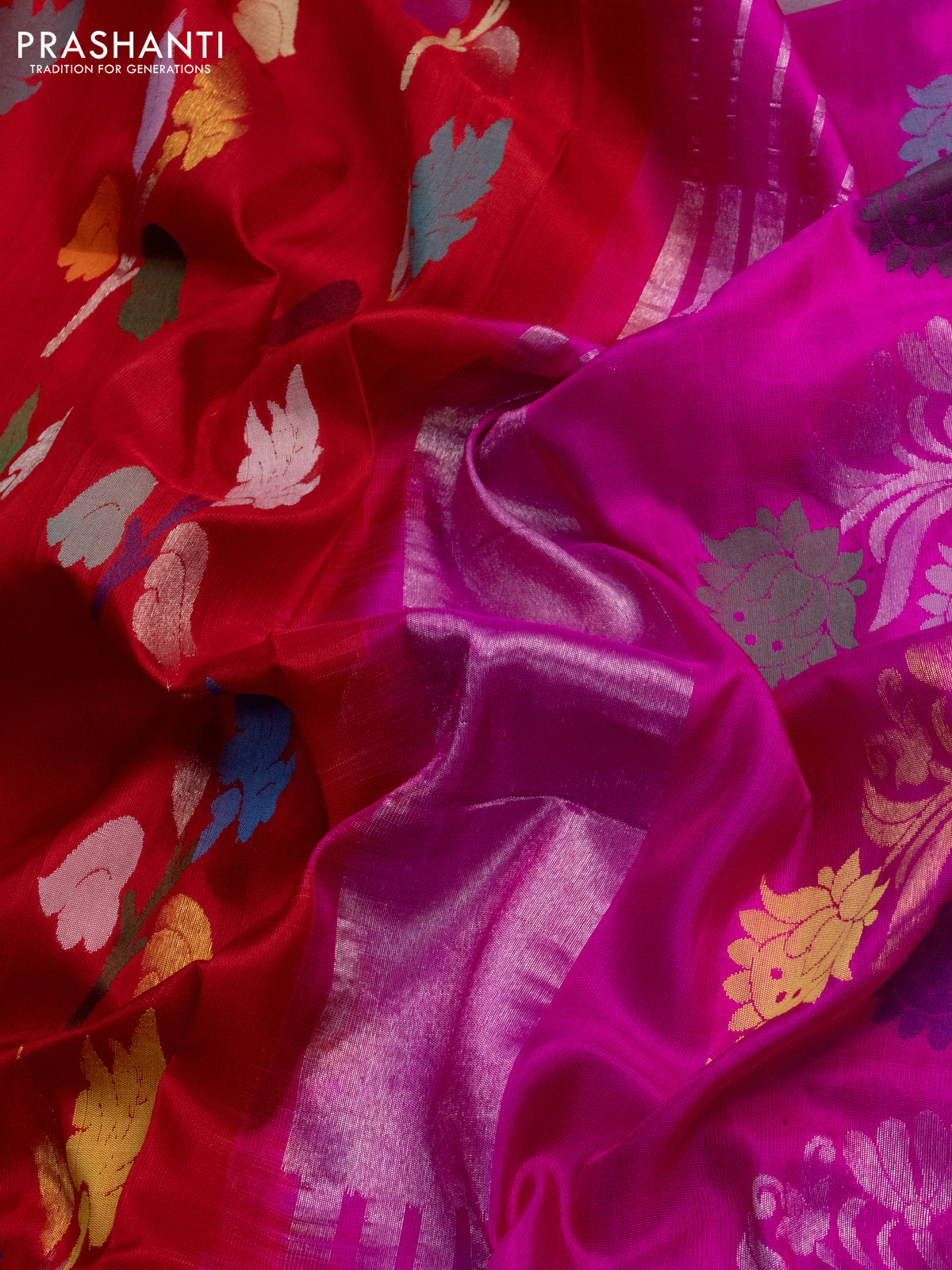 Venkatagiri silk saree red and pink with allover jamdani weaves and silver zari woven border