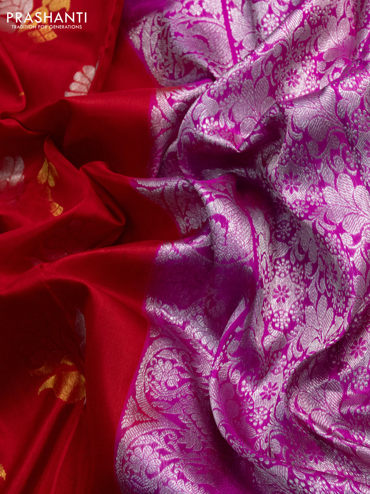 Venkatagiri silk saree red and pink with silver & gold zari woven buttas and long silver zari woven border