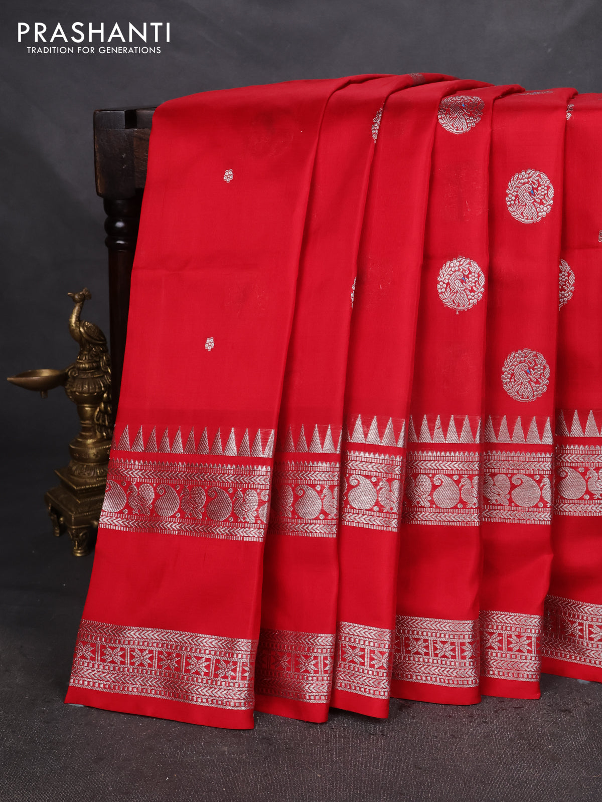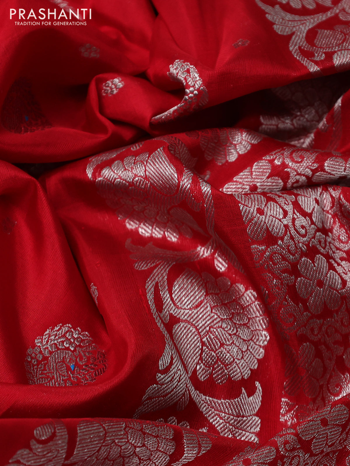Venkatagiri silk saree red with silver zari woven buttas and rettapet silver zari woven border