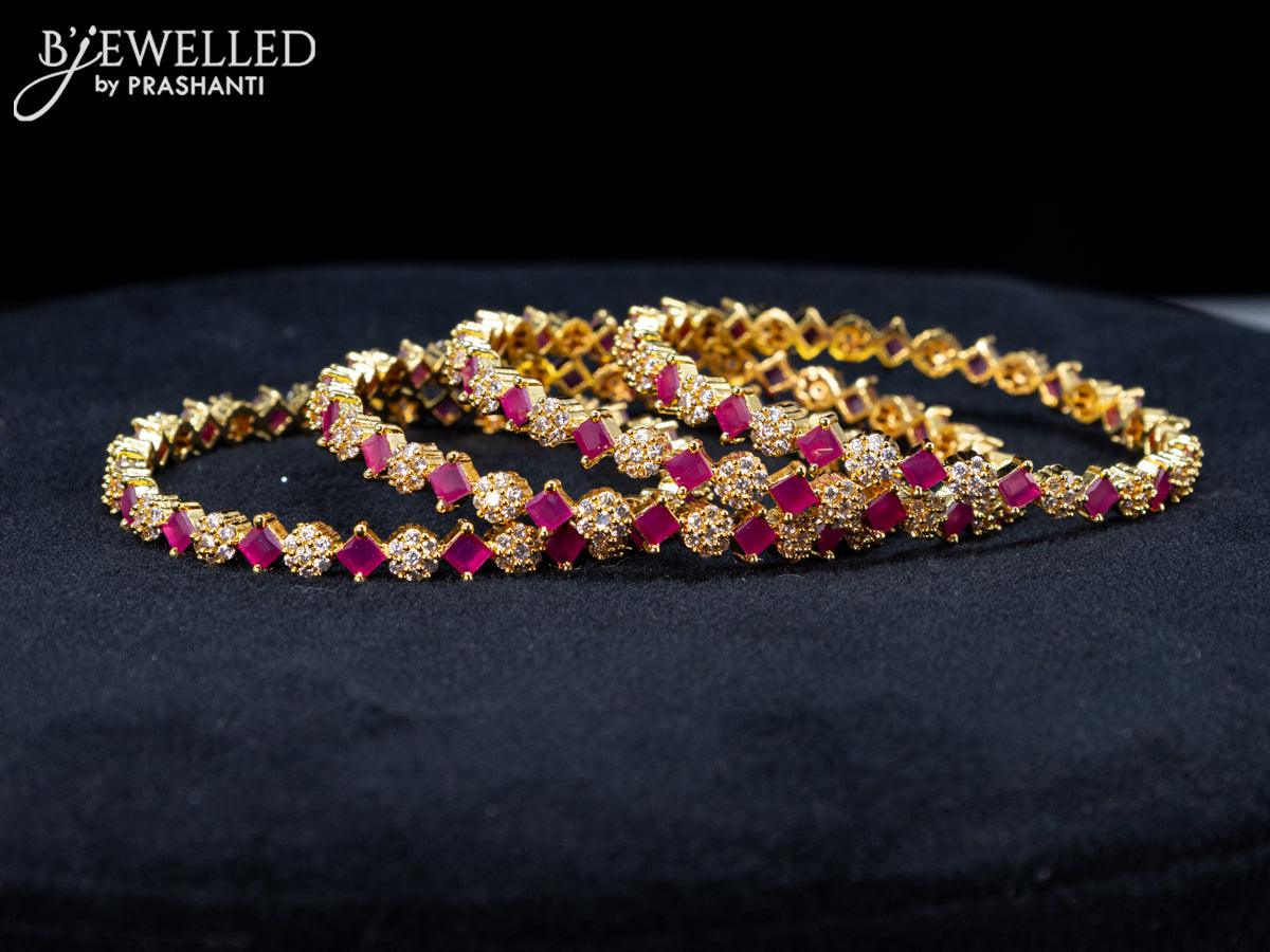 Zircon bangles floral design with ruby and cz stones in gold finish