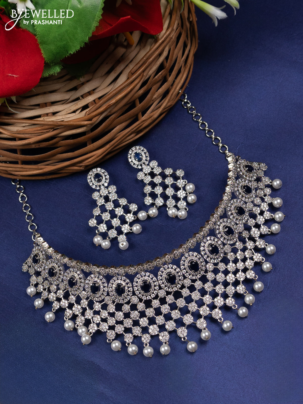 Zircon choker floral design with sapphire & cz stones and pearl hangings