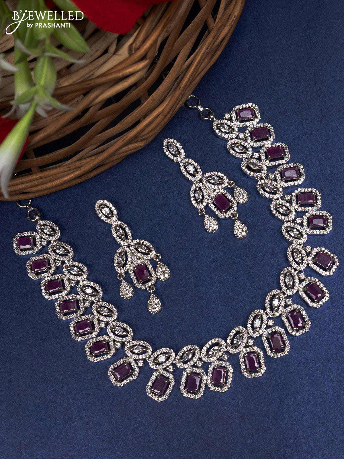 Zircon choker with ruby and cz stones