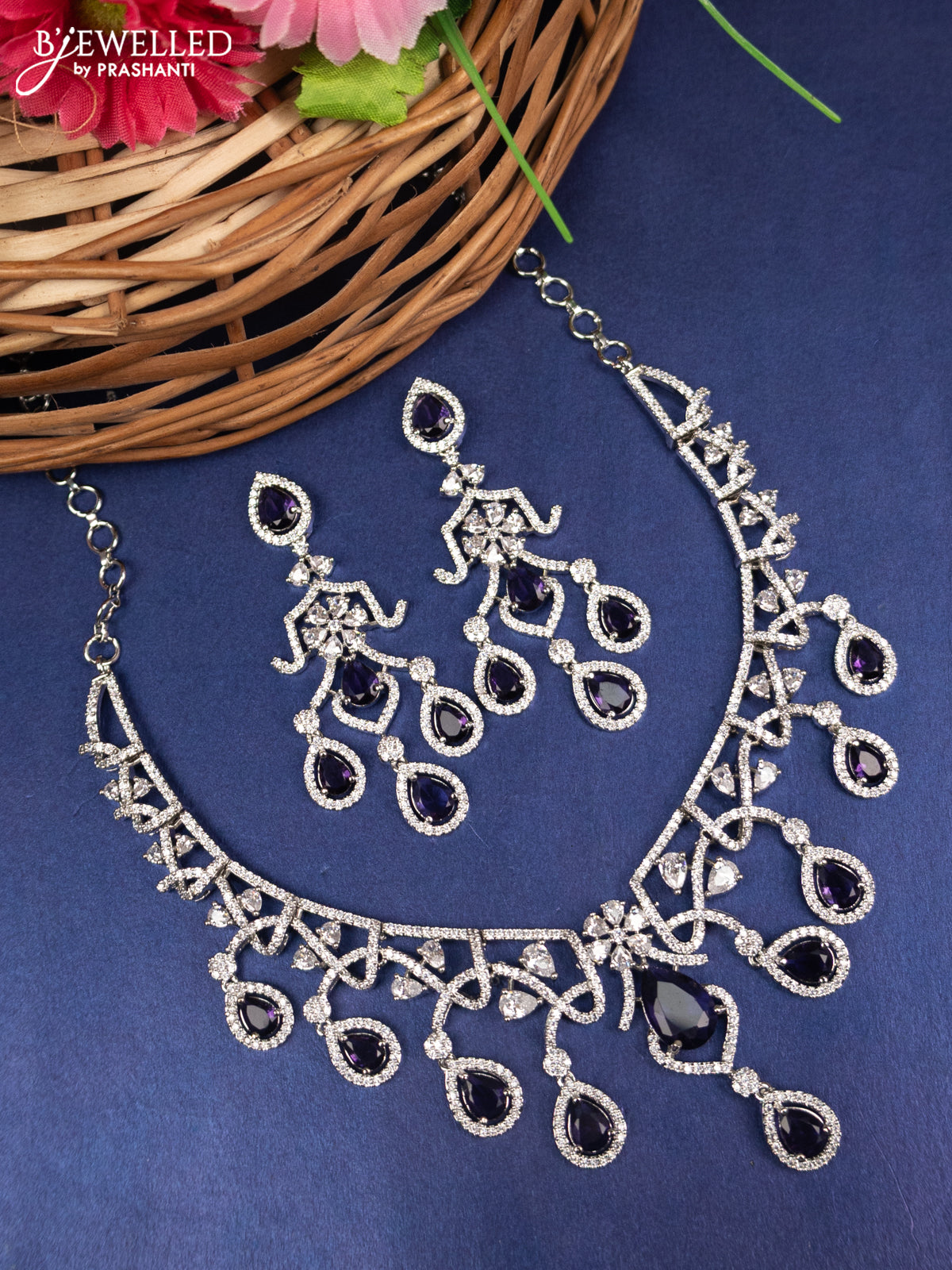Zircon choker with violet and cz stones