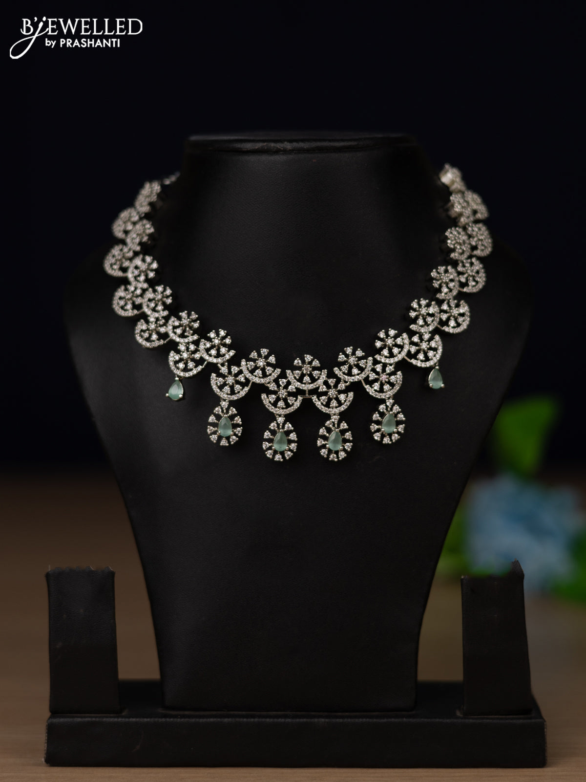 Zircon necklace with mint green and cz stones without earring