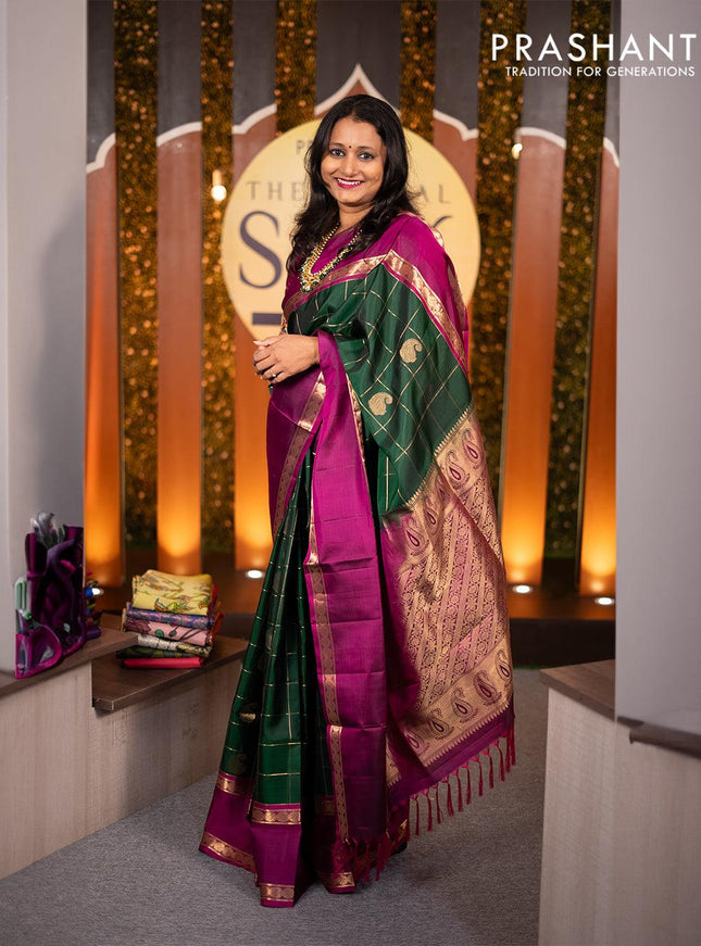 Pure gadwal silk saree beige and bottle green w...