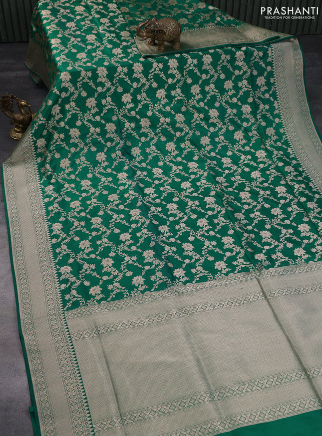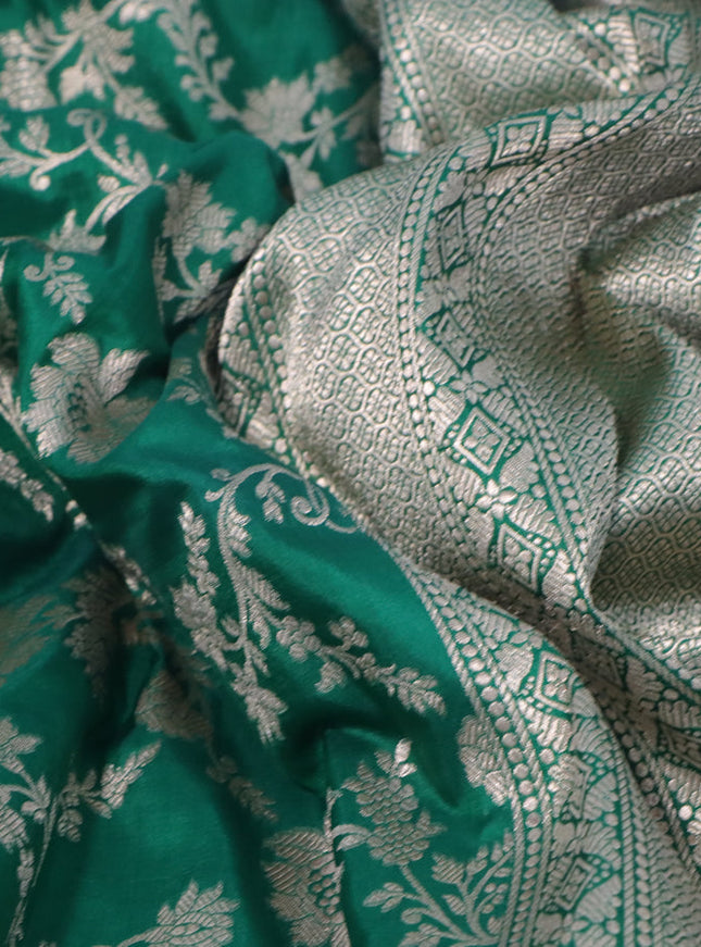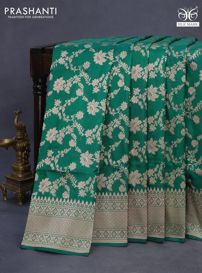 Pure banarasi uppada silk saree bottle green wi...