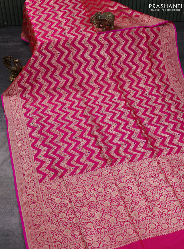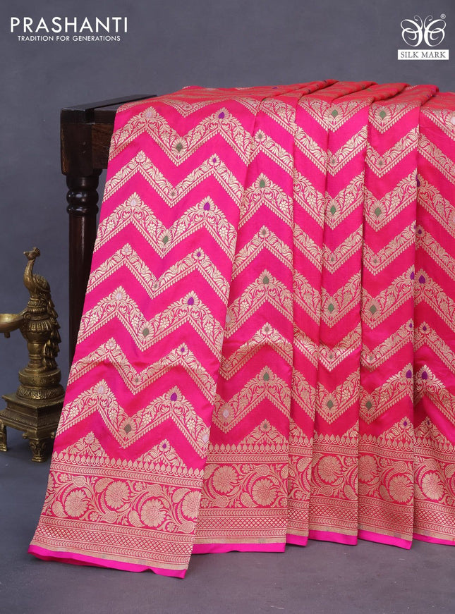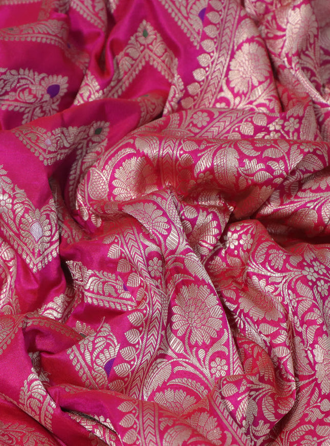 Pure banarasi uppada silk saree rani pink with ...