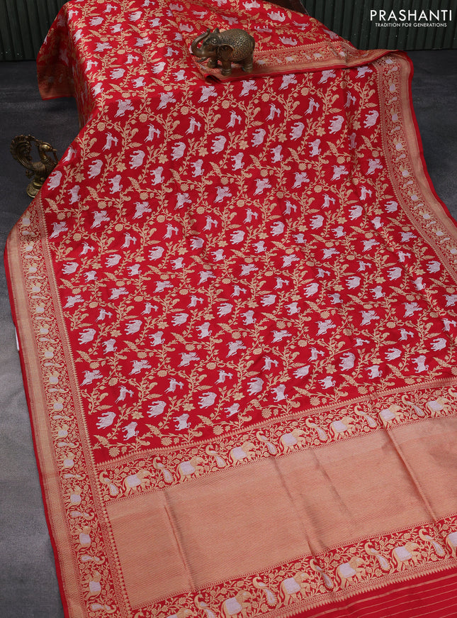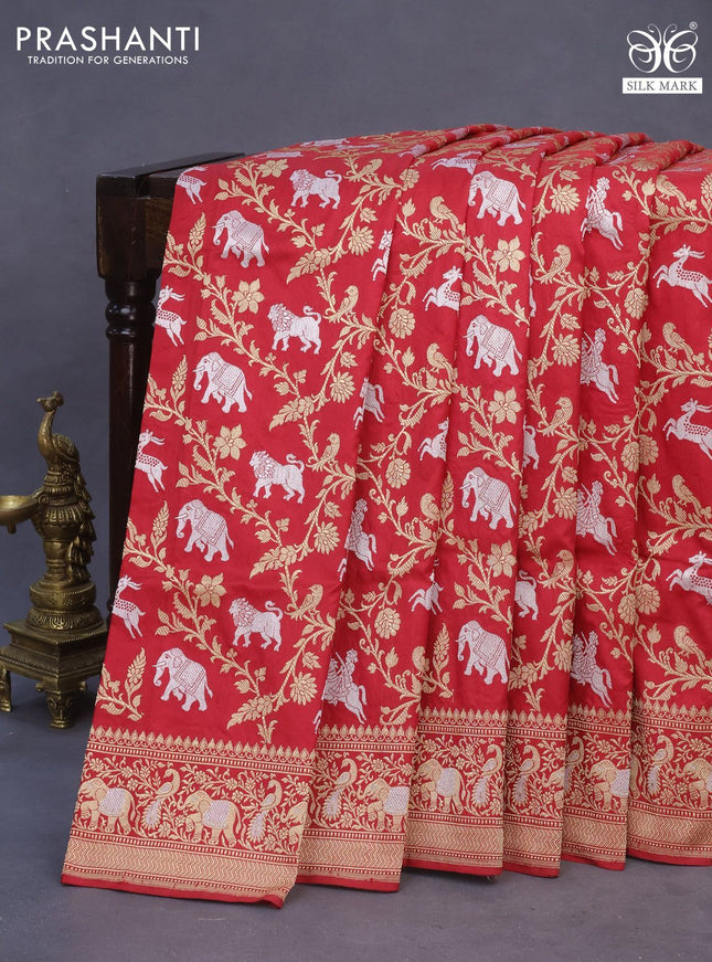 Pure banarasi uppada silk saree red with allove...